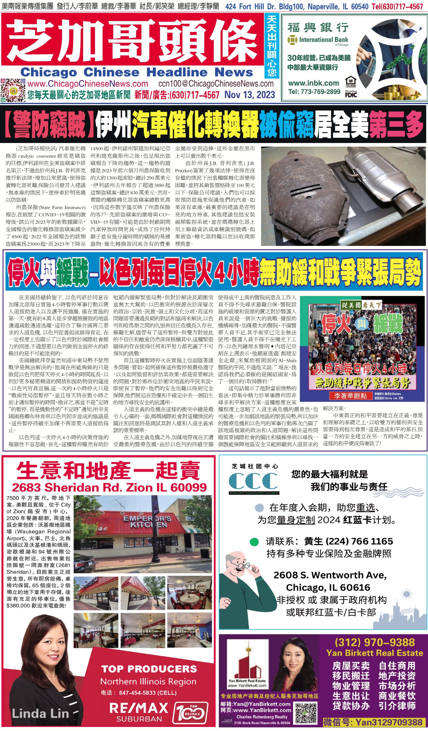 芝加哥頭條11-13-23芝加哥頭條【警防竊賊】伊州汽車催化轉換器被偷竊居全美第三多 Share this: Share on X (Opens in new window) X Share on Facebook (Opens in new window) Facebook Like Loading... Related