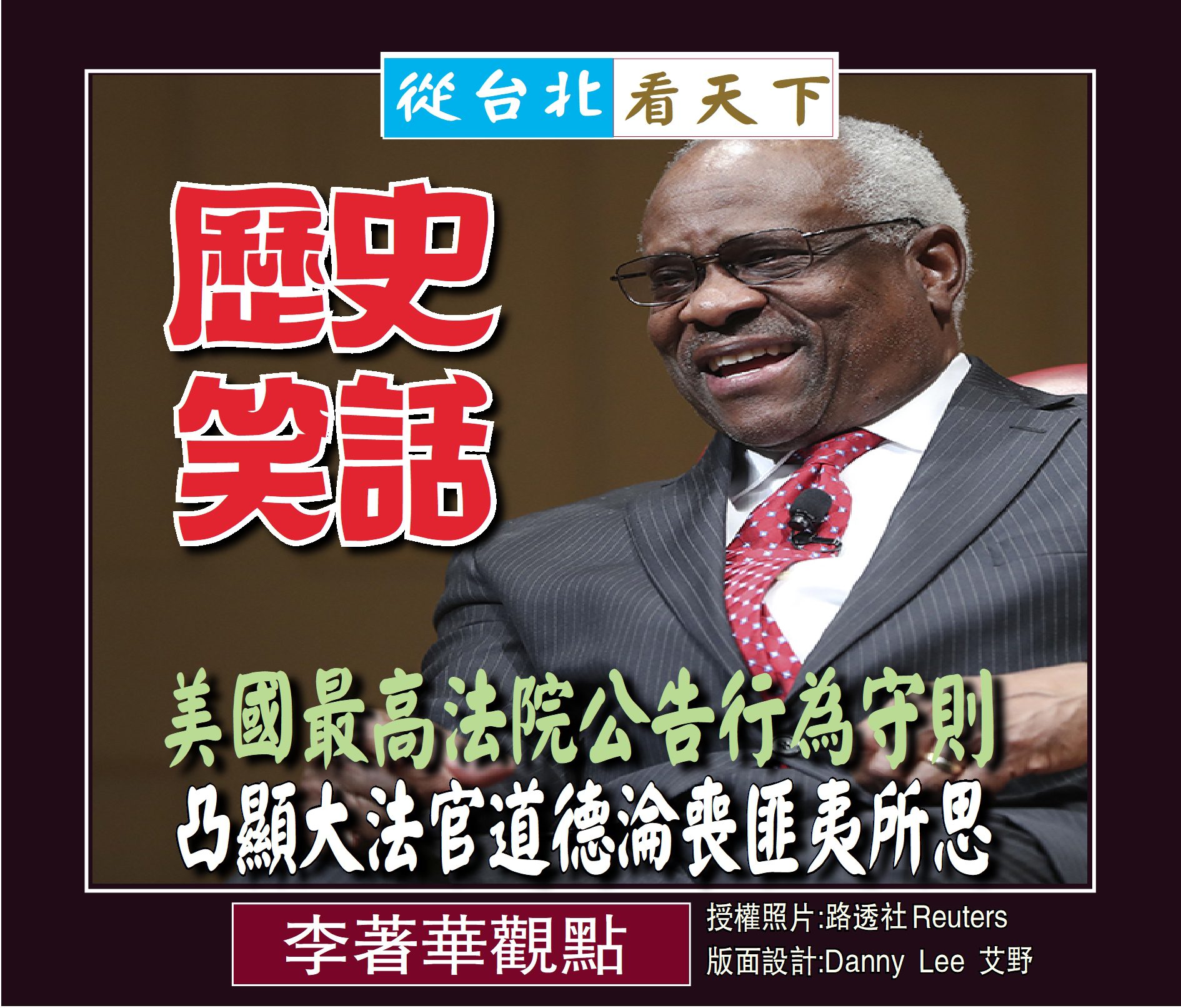 根據ProPublica報導,美國最高法院大法官克拉倫斯·托馬斯在20多年的時間裡接受了達拉斯商人哈倫·克羅的招待, 包括為他舉辦活動與贈送禮物和支付未公開的奢侈旅遊等,消息傳出後引來軒然大波, 托馬斯已陷入難堪的處境–無論是道德層次和法律界定, 都有商榷必要。