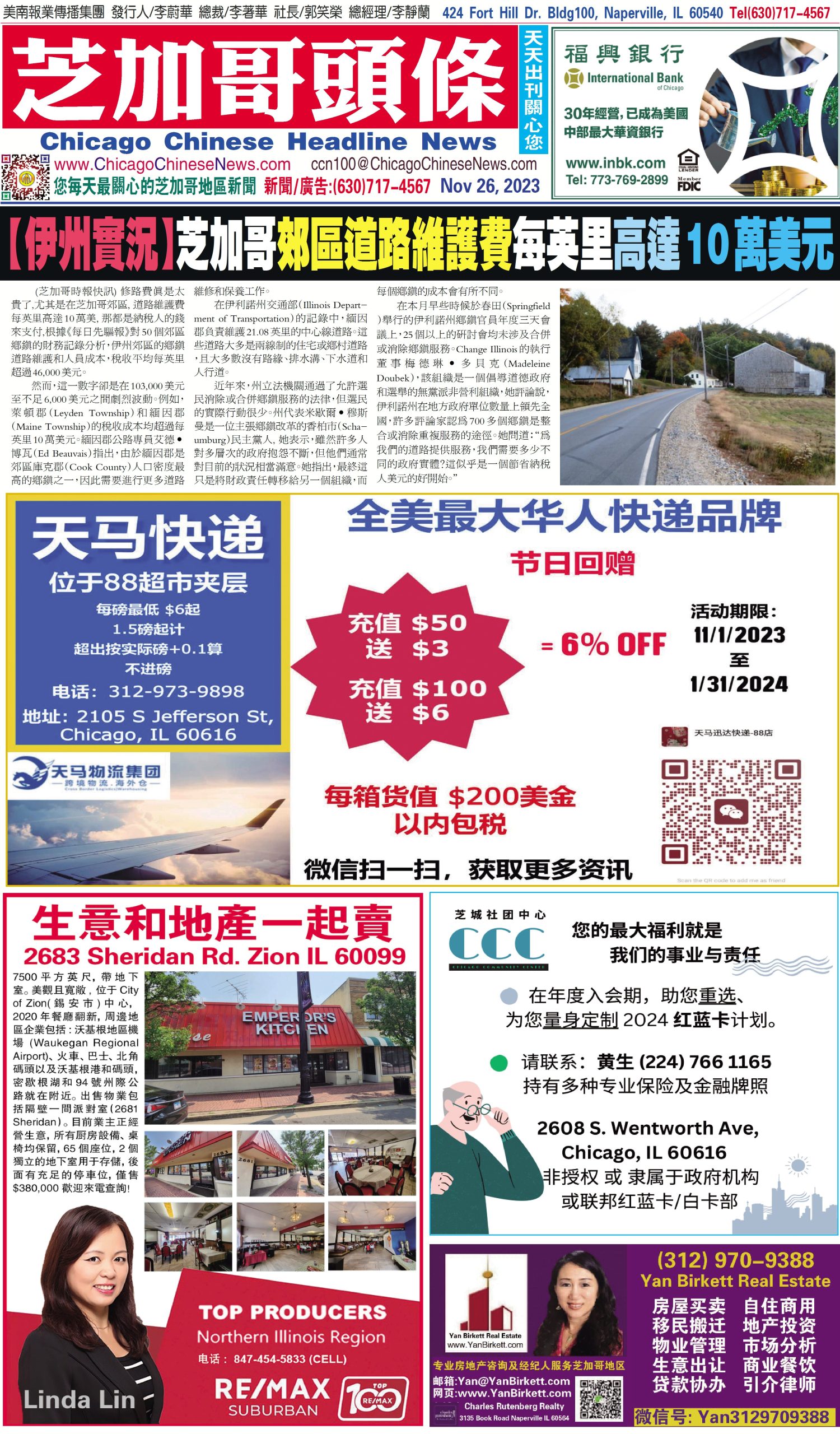 芝加哥頭條11-26-23芝加哥頭條【伊州實況】芝加哥郊區道路維護費每英里高達10萬美元 Share this: Share on X (Opens in new window) X Share on Facebook (Opens in new window) Facebook Like Loading... Related