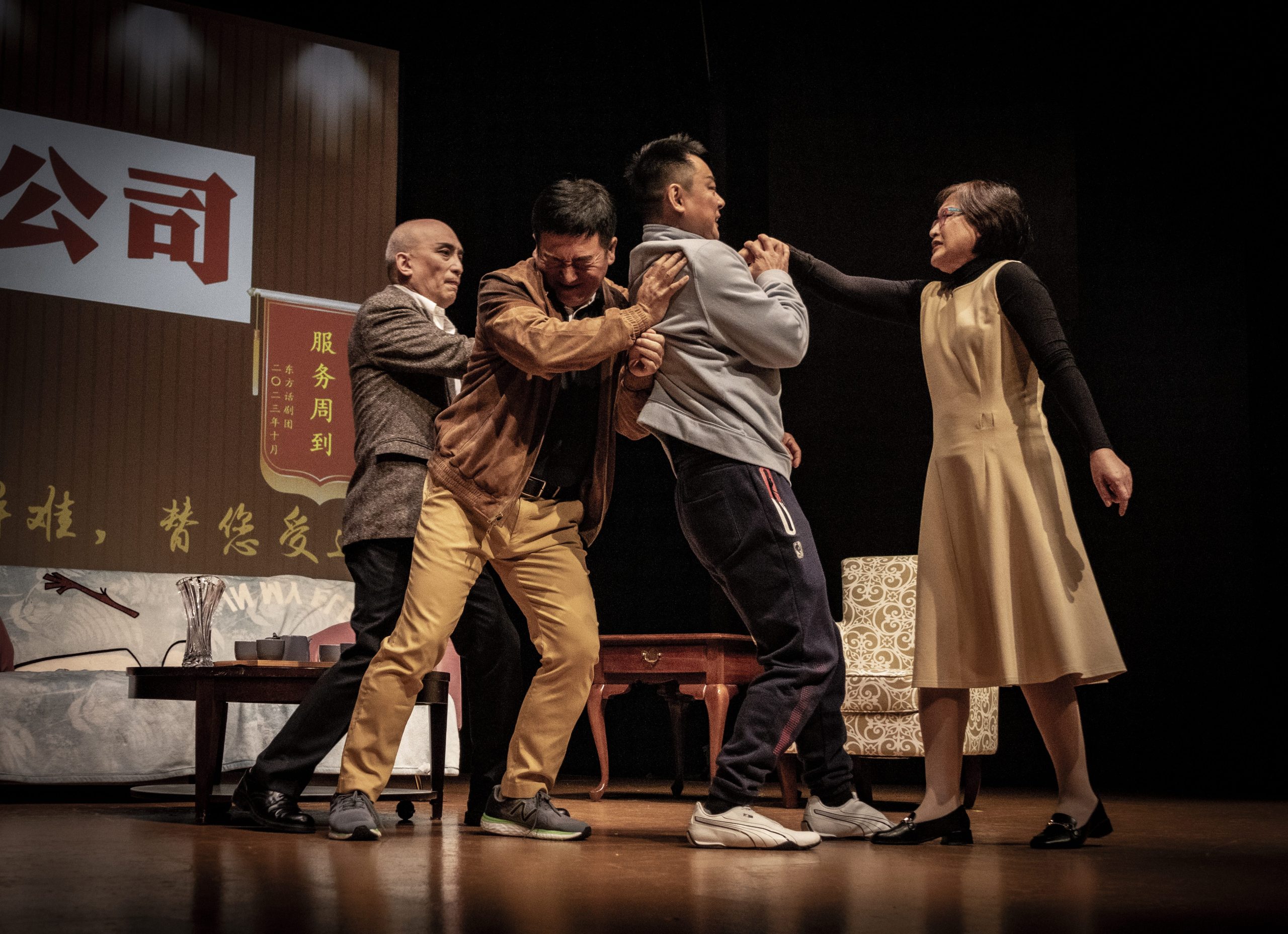话剧是一门综合表演艺术,剧本、演员、灯光、音响、道具、舞美、化妆、票务,需要一个强大团队在台前幕后的精诚合作,陈红团长特别感谢幕后工作人员的默默付出。
