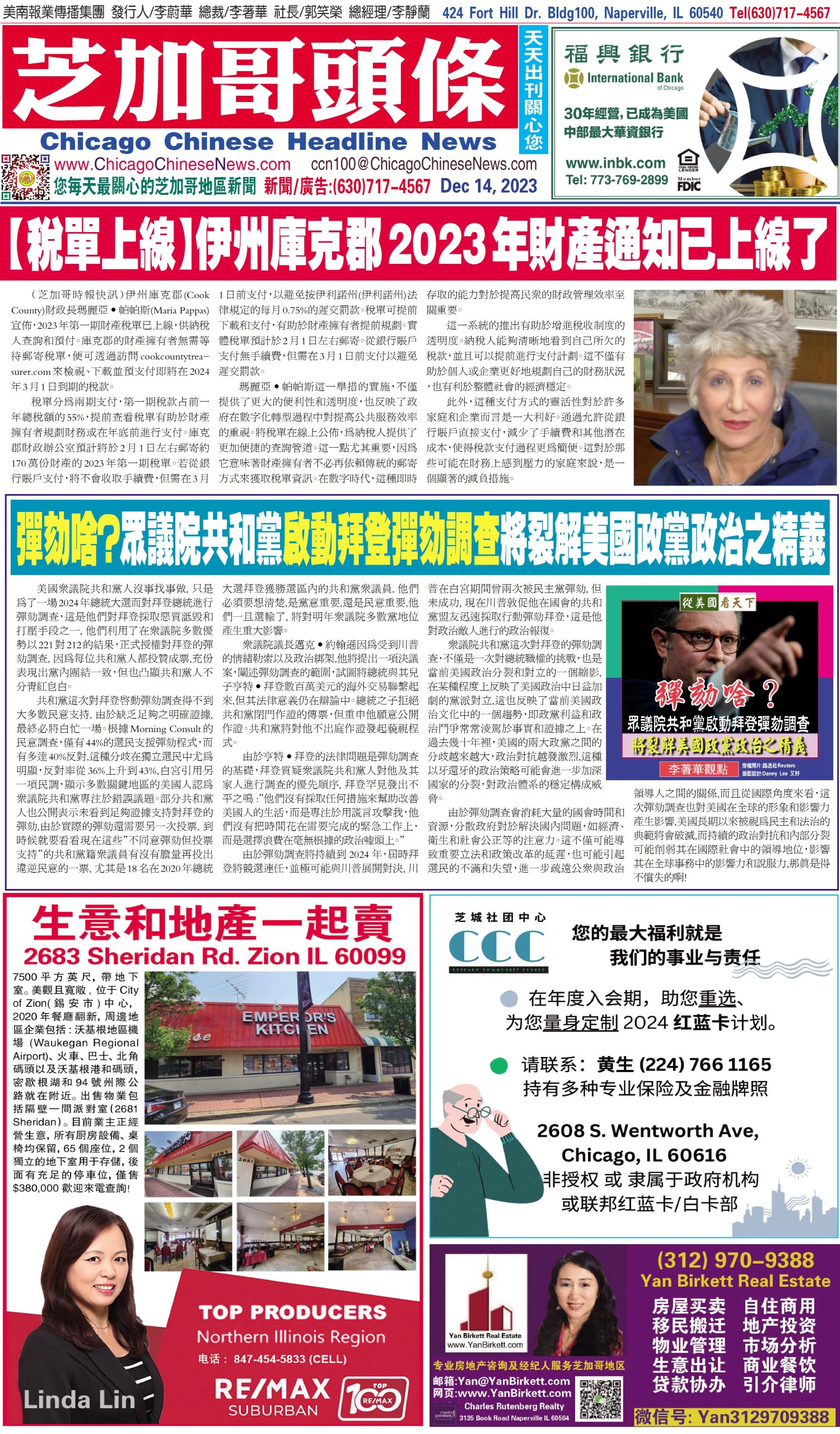 芝加哥頭條12-14-23芝加哥頭條【稅單上線】伊州庫克郡2023年財產通知已上線了 Share this: Share on X (Opens in new window) X Share on Facebook (Opens in new window) Facebook Like Loading... Related