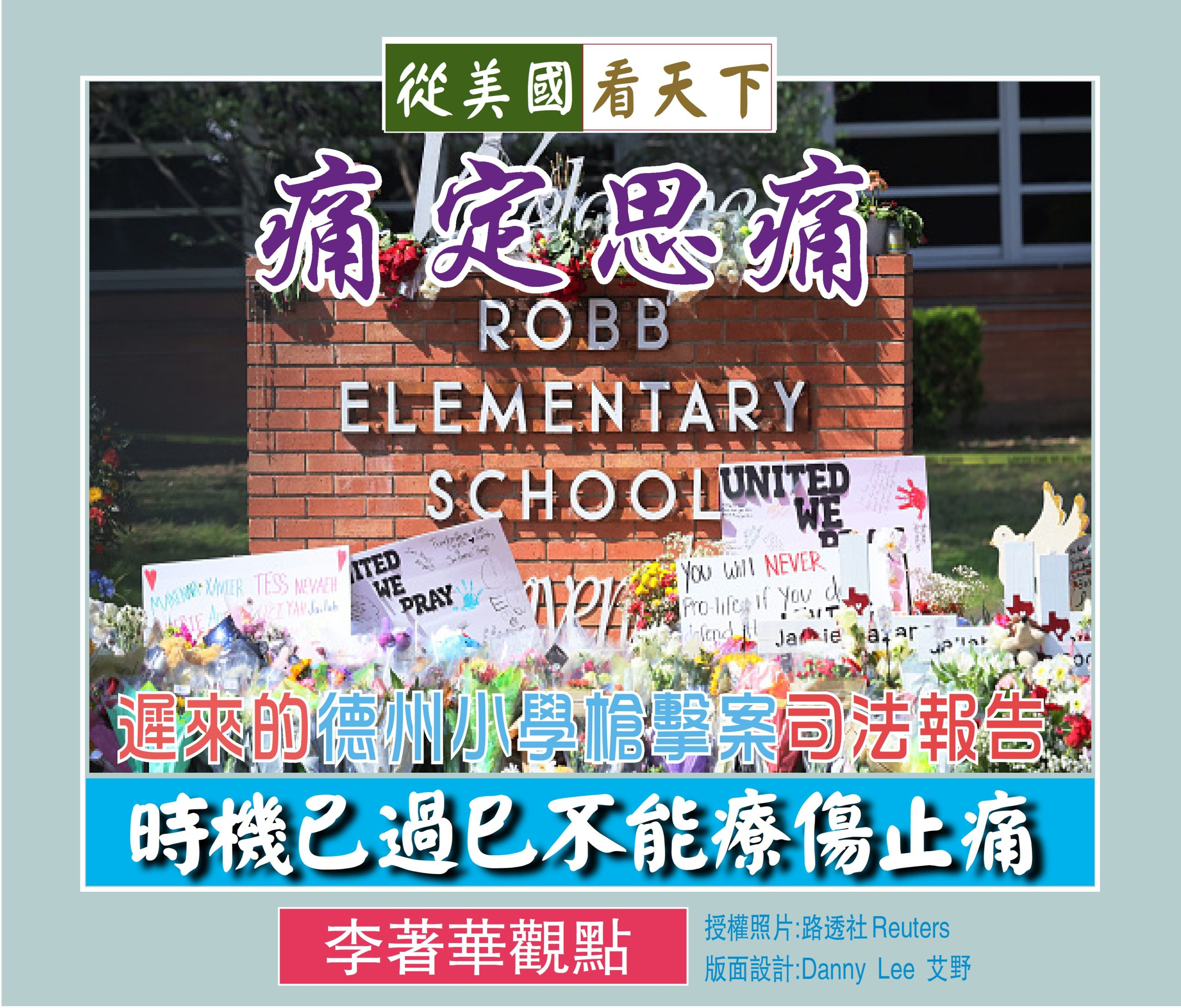 不過非常諷刺的是,羅伯小學事件發生在2023年5月24日, 案發時有超過370名員警在現場,竟花了1小時17分鐘才制服兇手, 官方早該有一個正式鑑評報告, 如今司法部竟在 1年7個月後才給出了司法報告, 這份遲來的報告巳不能療傷止痛, 這充分反映出在危機溝通、指揮統一和行動快速性方面從下到上明顯都不足, 美國司法系統與執法單位令人擔憂!
