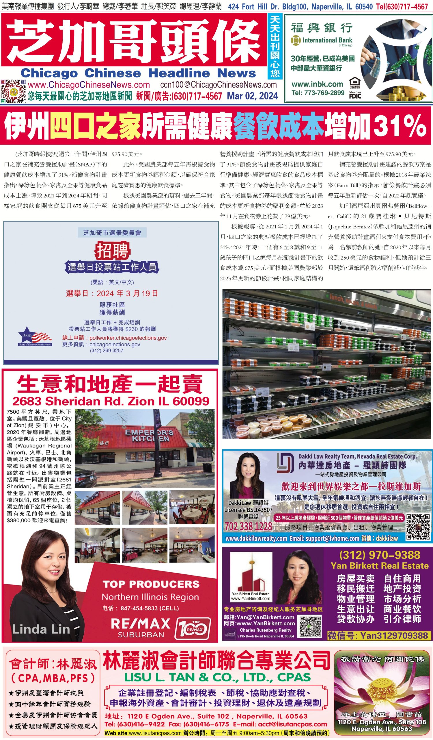 芝加哥頭條03-02-24芝加哥頭條(伊州四口之家所需健康餐飲成本增加31%) Share this: Share on X (Opens in new window) X Share on Facebook (Opens in new window) Facebook Like Loading... Related