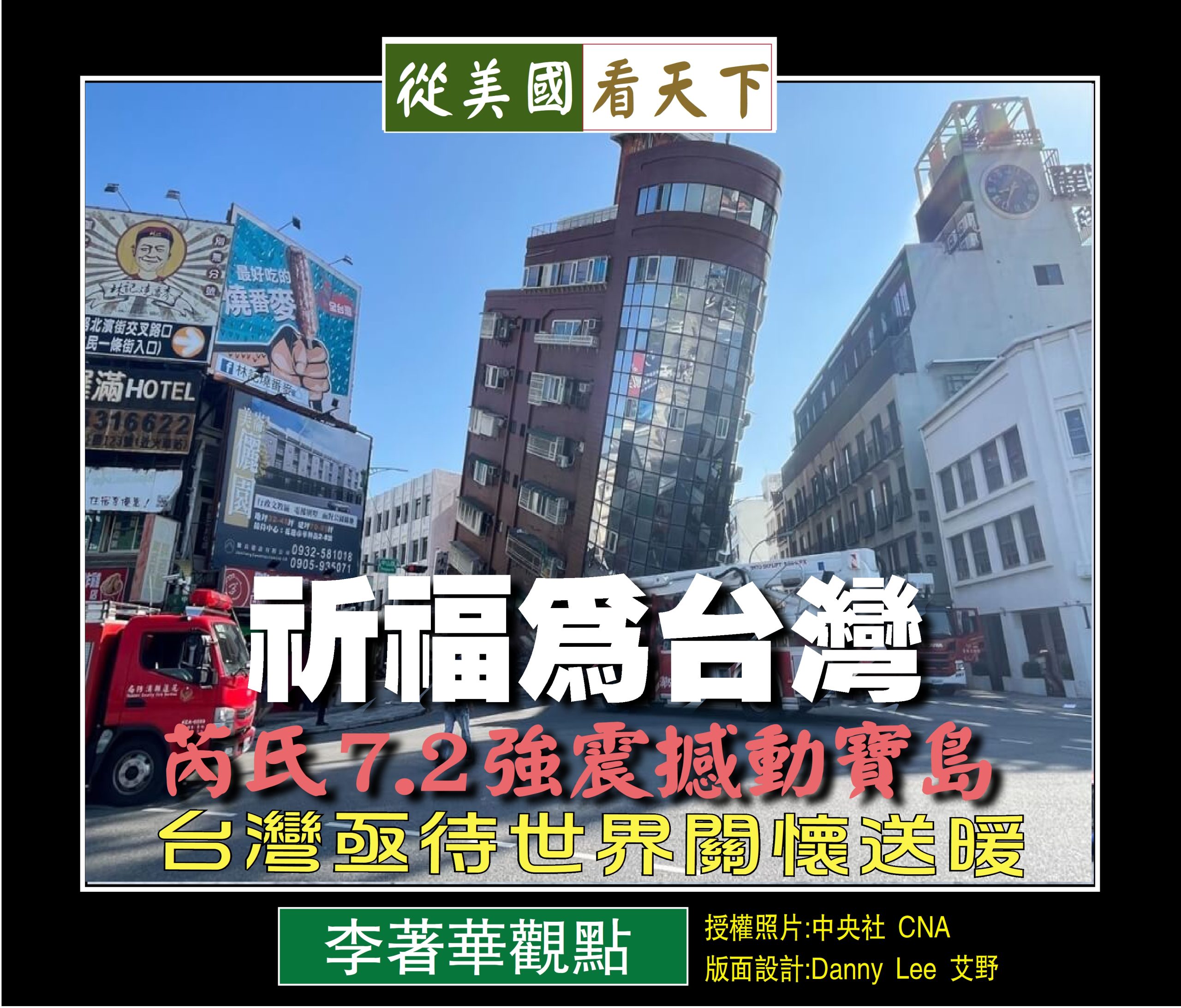 403大地震也是對我們應對災難的態度和方法的一次反思。在追求經濟發展的同時,我們是否忽略了對生態環境的保護和對自然災害的預防?我們是否應該更加重視氣候變化和地球環境的保護,以減少自然災害的發生頻率和影響?這些都是我們應該慎重思考的, 而且這場災難也提醒我們,災害復原不僅僅是物理建築的重建,更重要的是心理創傷的療愈, 所以災後心理支援對於受災者來說至關重要,它幫助人們處理災難帶來的恐懼和不安,重建信心和希望, 因此,投資於心理健康支援和社區凝聚力的建設,對於提高社會整體的恢復力是不可或缺的, 現在台灣亟待世界關懷送暖, 但願各界能以”一方有難、八方支援”的精神, 對台灣災區伸出援手以發揮人性中最光輝的一面。