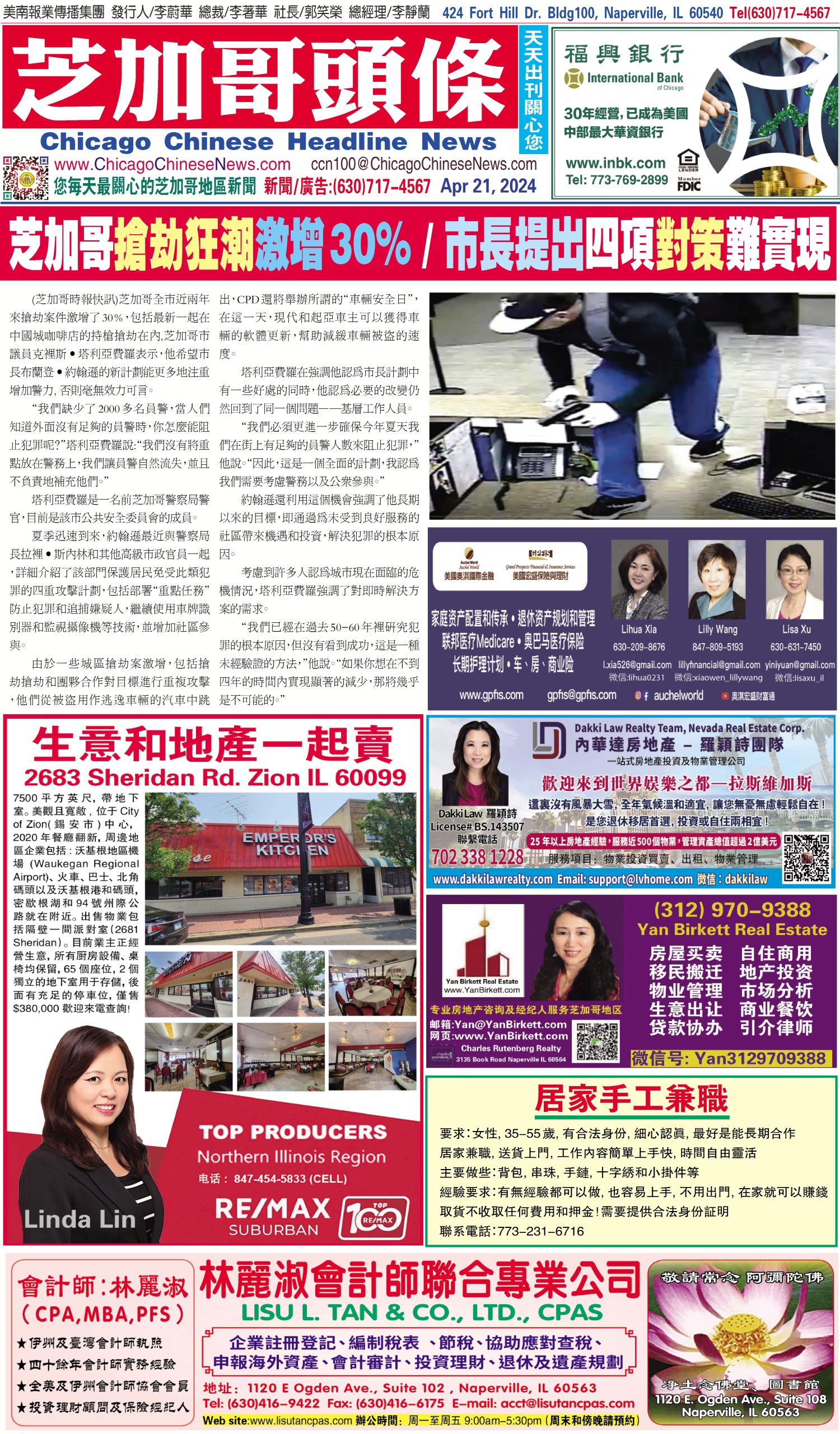 芝加哥頭條04-21-24芝加哥頭條(芝加哥搶劫狂潮激增30% / 市長提出四項對策難實現) Share this: Share on X (Opens in new window) X Share on Facebook (Opens in new window) Facebook Like Loading... Related