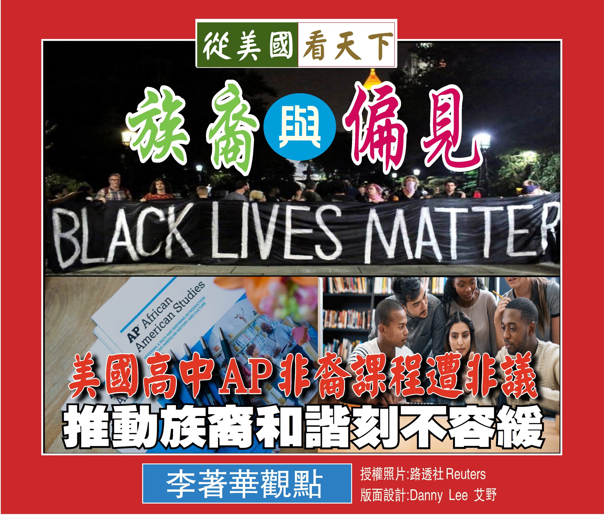 美國各州有各州的教育政策,聯邦政府似乎無權也無能左右各州所明定的政令方針,從這次高中AP非裔課程遭到某些州的阻礙反映了美國種族議題的複雜性和討論空間的必要性, 為消除這些種族歧視和不平等現象,編輯一套更加包容的歷史教科書就變成非常重要的課題了,美國的高中歷史教育以往在提及非裔時著重於他們早期在奴隸制度下所受到的歧視和壓迫,以及後來追求民權運動所做之努力,但是對於他們祖先對美國所重的貢獻或故事所述甚少,而這次的AP課程正彌補了這方面的缺失,如果適當的改善教材的內容,在課程中加上跨種族和跨文化的批判性思維和多元化視角,使得學生可以在學習過程中發揮創意,並將黑人的歷史與其他族裔群體的歷史融合在一起, 在課程內容和框架不斷完善後,將更有助於學生獨立思考和判斷的能力,應該可以得到更多州的肯定和採納吧!