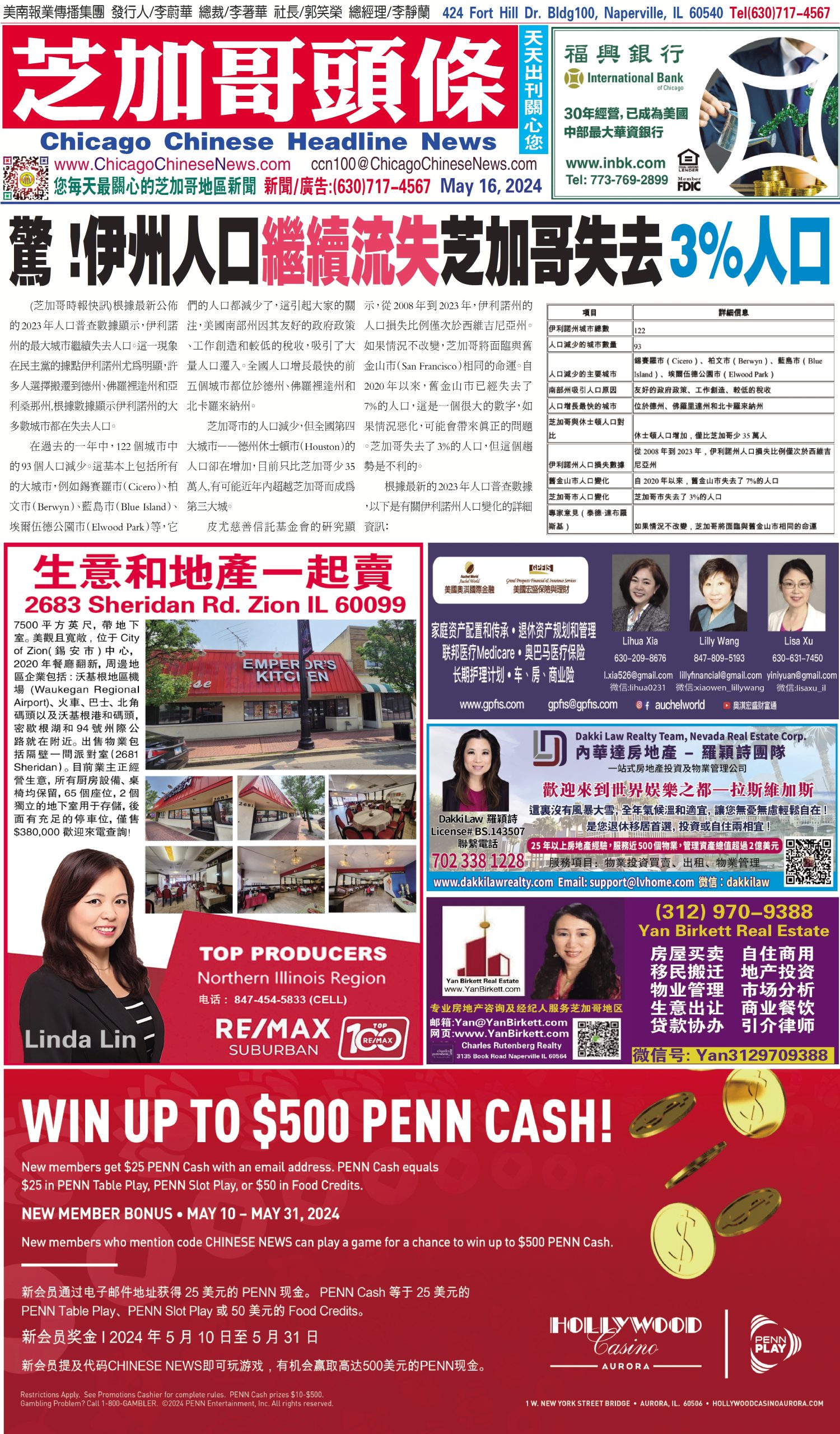 芝加哥頭條05-16-24芝加哥頭條(驚 !伊州人口繼續流失芝加哥失去3%人口) Share this: Share on X (Opens in new window) X Share on Facebook (Opens in new window) Facebook Like Loading... Related