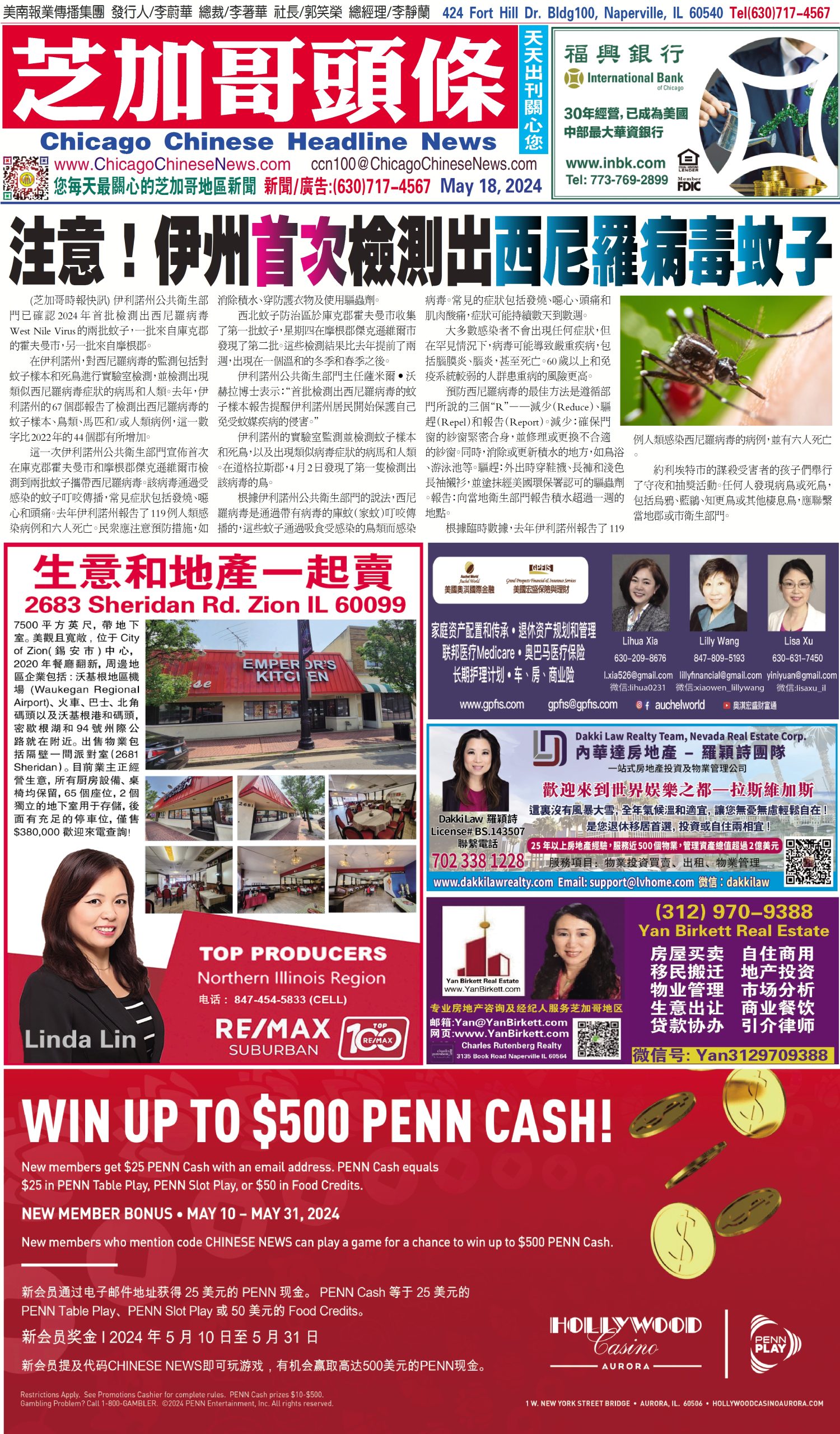 芝加哥頭條05-18-24芝加哥頭條(注意 ! 伊州首次檢測出西尼羅病毒蚊子) Share this: Share on X (Opens in new window) X Share on Facebook (Opens in new window) Facebook Like Loading... Related