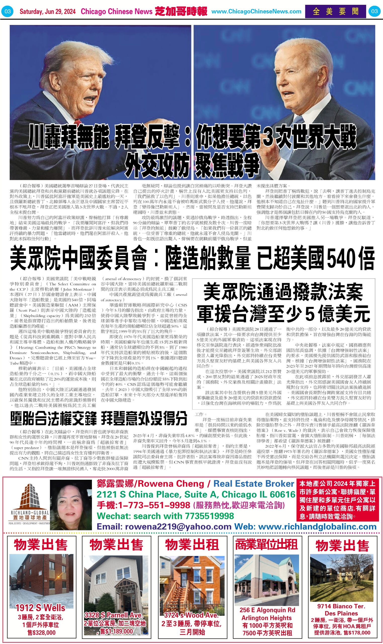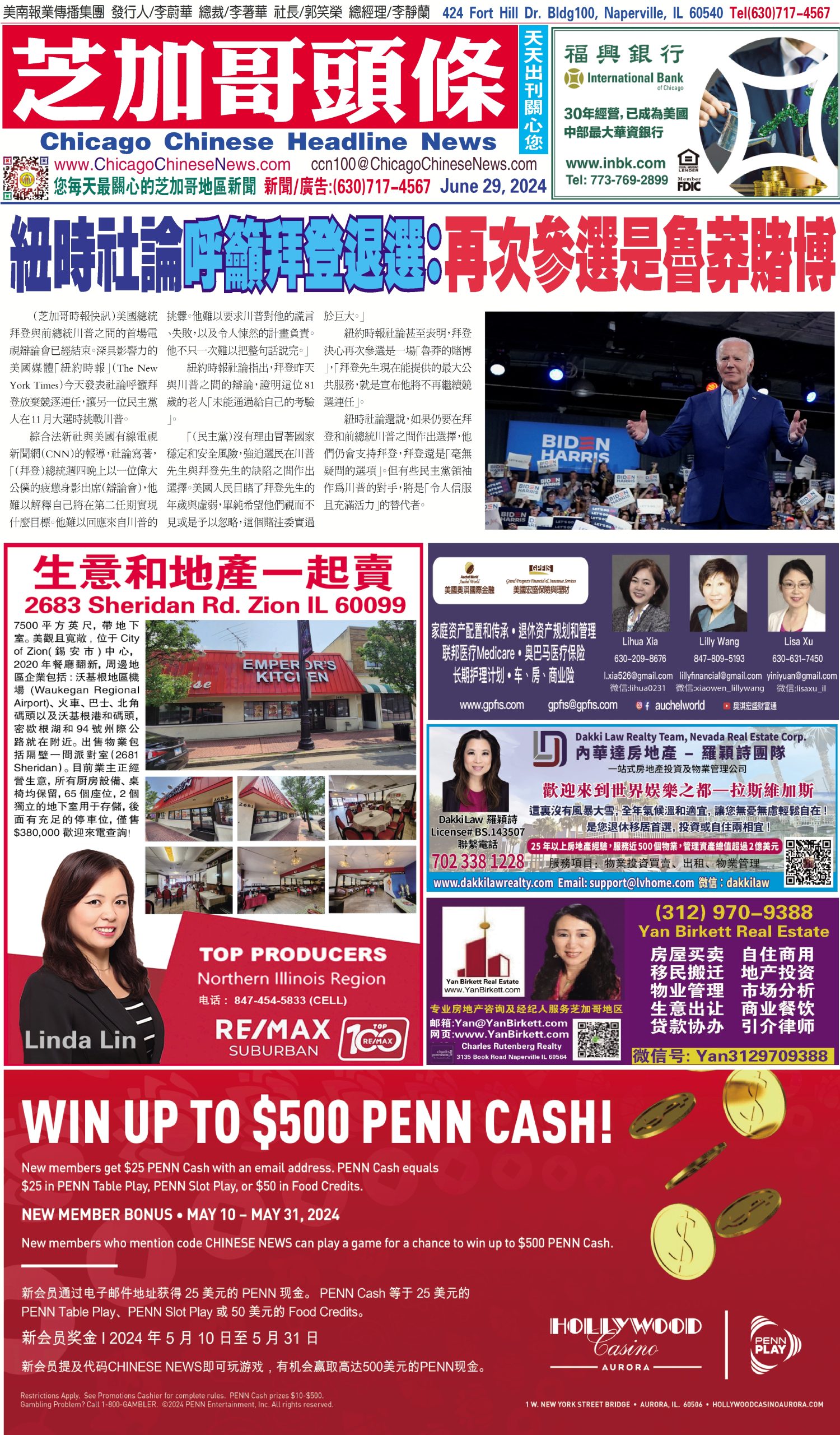 芝加哥頭條06-29-24芝加哥頭條(紐時社論呼籲拜登退選:再次參選是魯莽賭博) Share this: Share on X (Opens in new window) X Share on Facebook (Opens in new window) Facebook Like Loading... Related