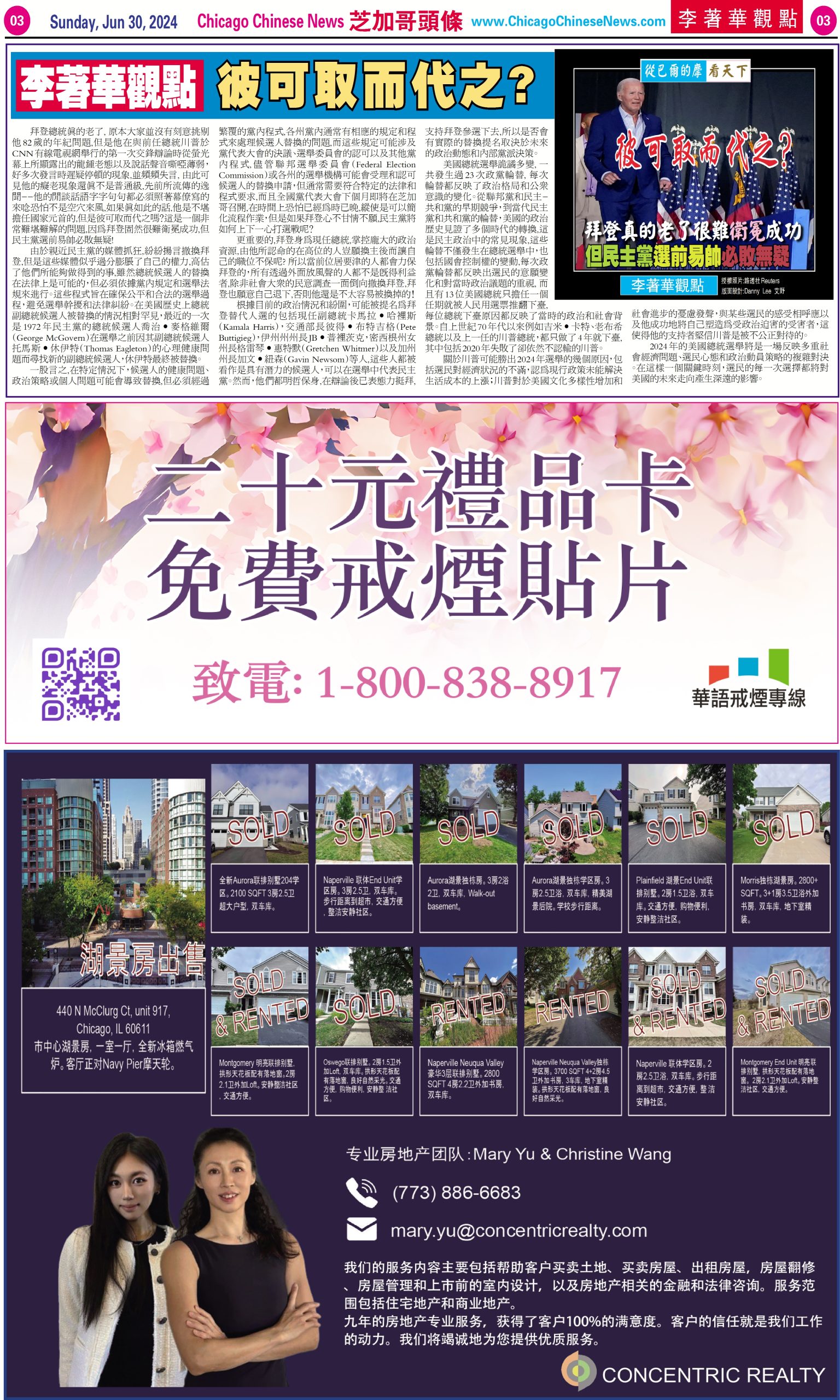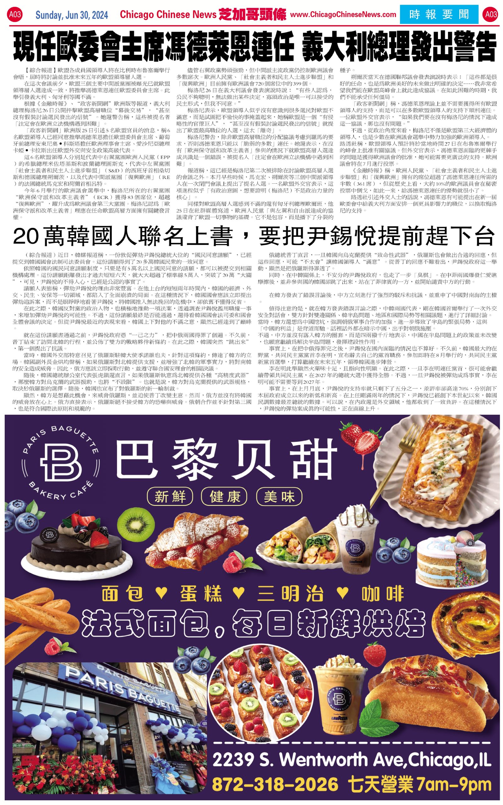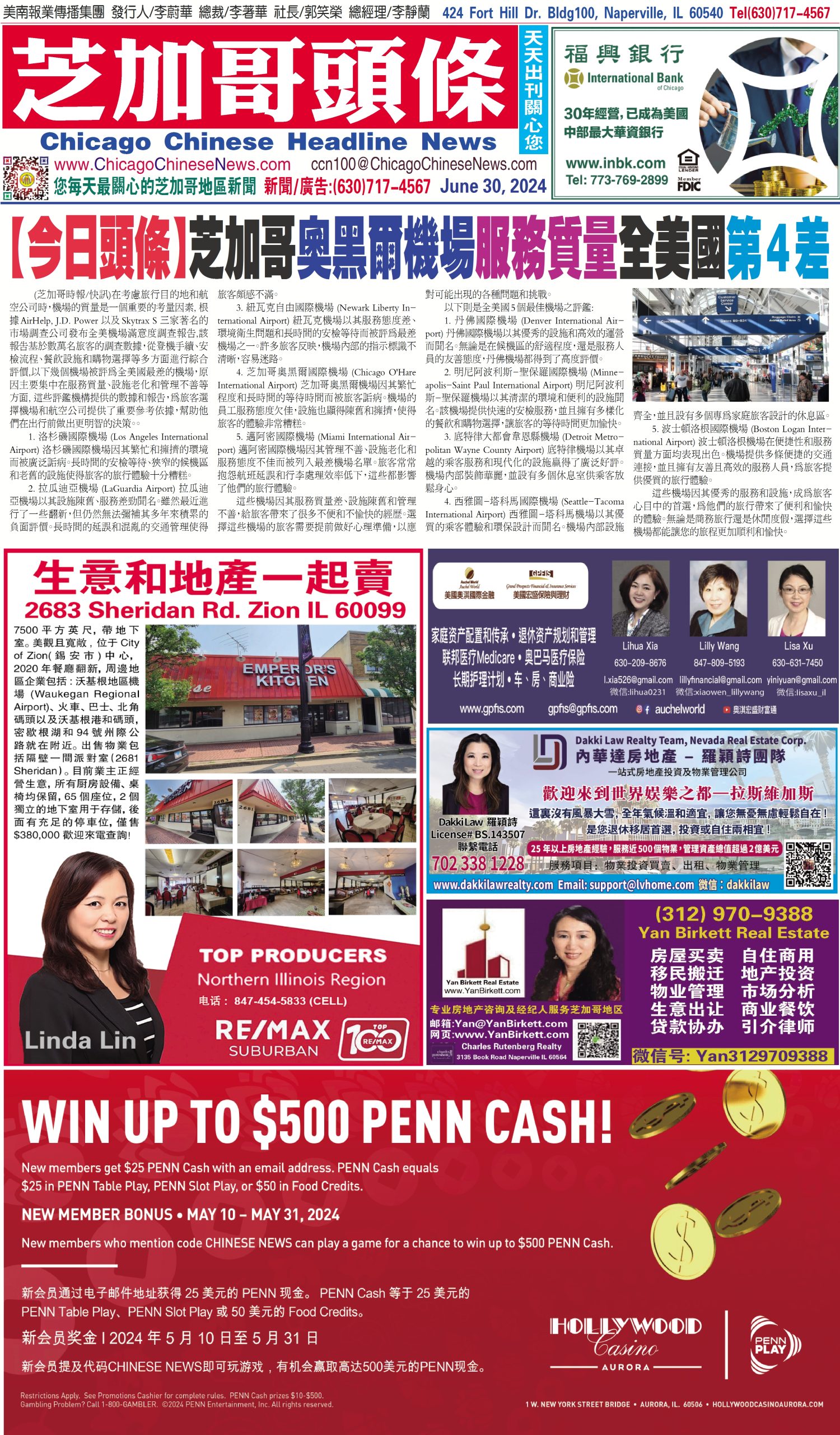 芝加哥頭條06-30-24芝加哥頭條(芝加哥奧黑爾機場服務質量全美國第4差) Share this: Share on X (Opens in new window) X Share on Facebook (Opens in new window) Facebook Like Loading... Related