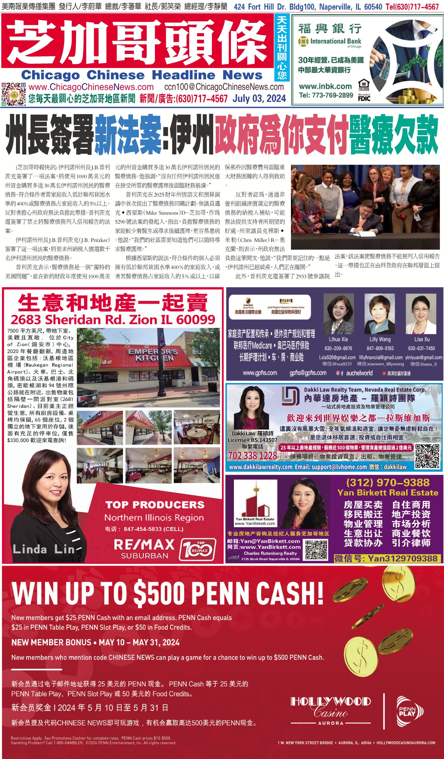 芝加哥頭條07-03-24芝加哥頭條(州長簽署新法案:伊州政府為你支付醫療欠款) Share this: Share on X (Opens in new window) X Share on Facebook (Opens in new window) Facebook Like Loading... Related