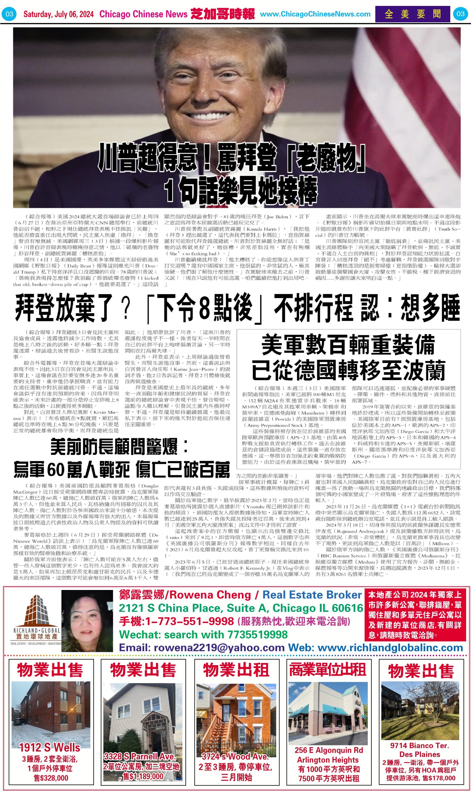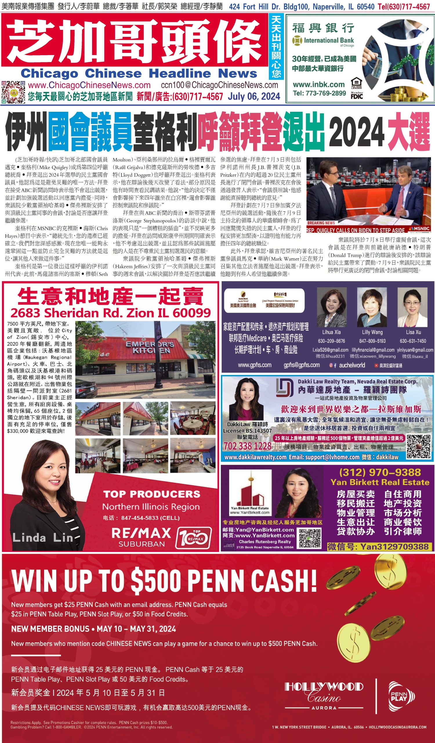 芝加哥頭條07-06-24芝加哥頭條(伊州國會議員奎格利呼籲拜登退出2024大選) Share this: Share on X (Opens in new window) X Share on Facebook (Opens in new window) Facebook Like Loading... Related