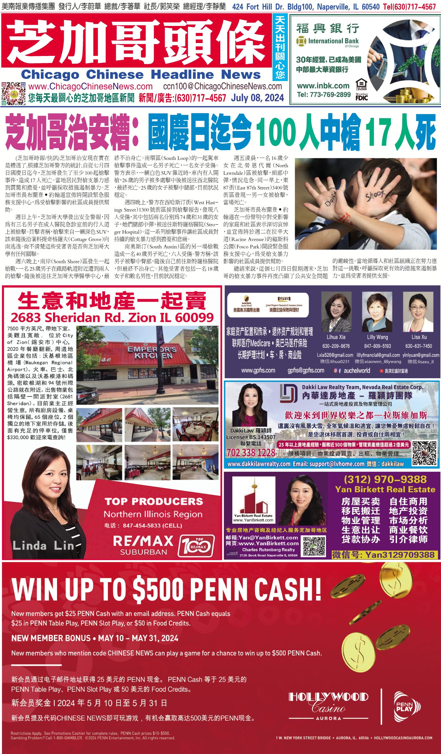 芝加哥頭條07-08-24芝加哥頭條(芝加哥治安糟 :國慶日迄今100人中槍17人死) Share this: Share on X (Opens in new window) X Share on Facebook (Opens in new window) Facebook Like Loading... Related