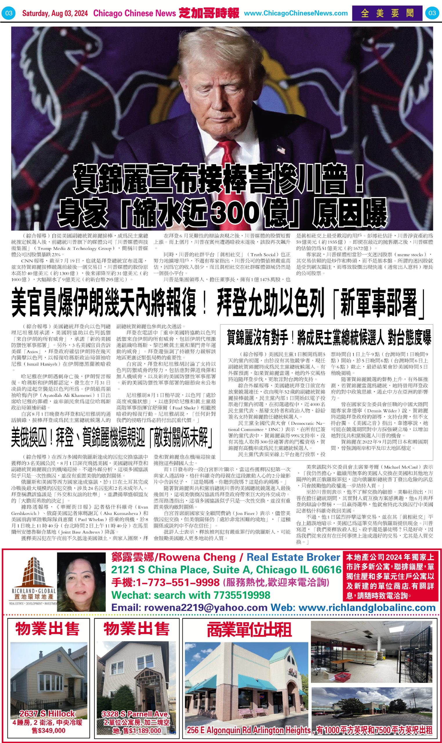 芝加哥頭條08-03-24芝加哥頭條(再起飛 ! 波音任命新CEO以應對挑戰) Share this: Share on X (Opens in new window) X Share on Facebook (Opens in new window) Facebook Like Loading... Related