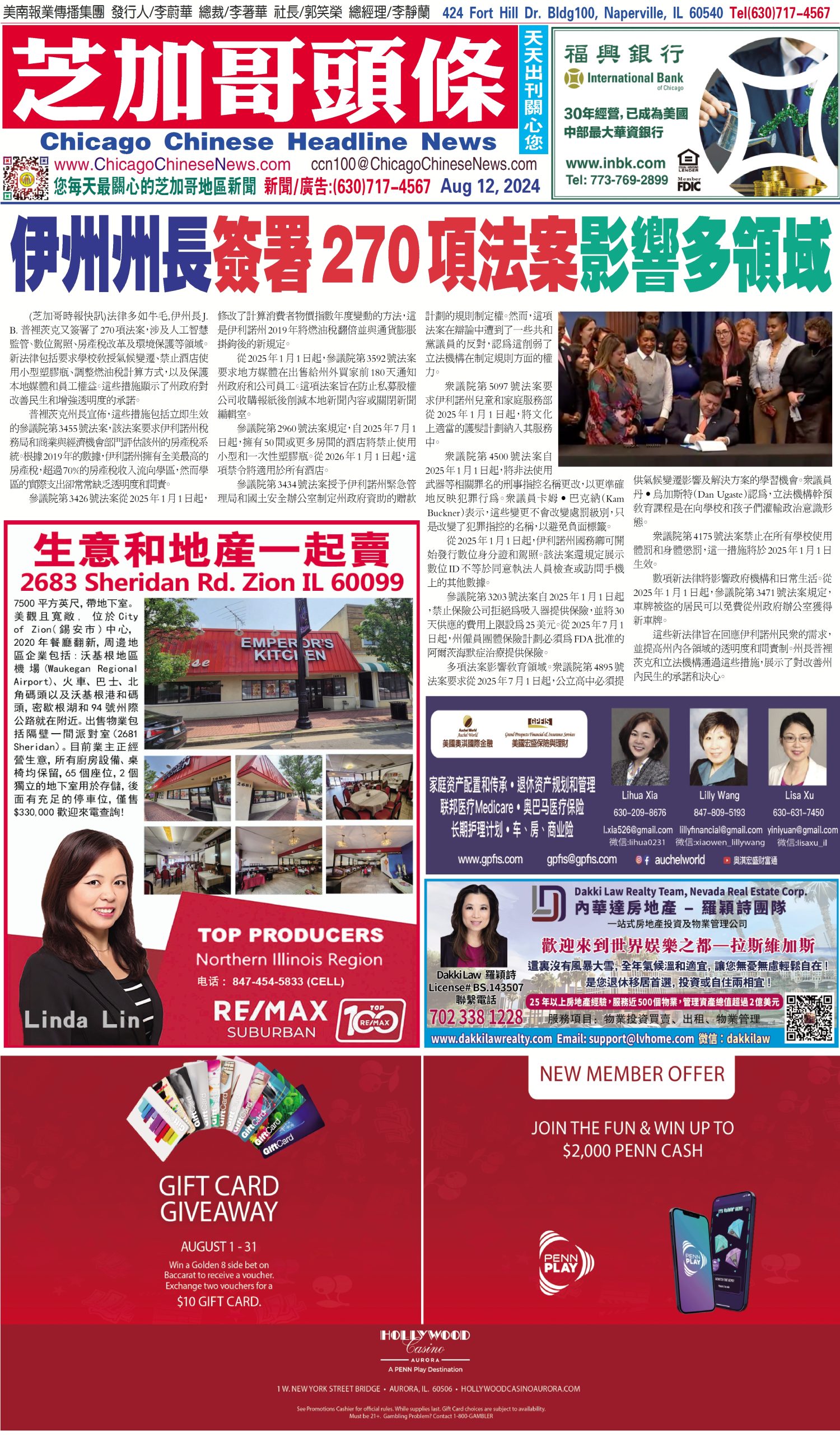 芝加哥頭條08-12-24芝加哥頭條(伊州州長簽署270項法案影響多領域) Share this: Share on X (Opens in new window) X Share on Facebook (Opens in new window) Facebook Like Loading... Related