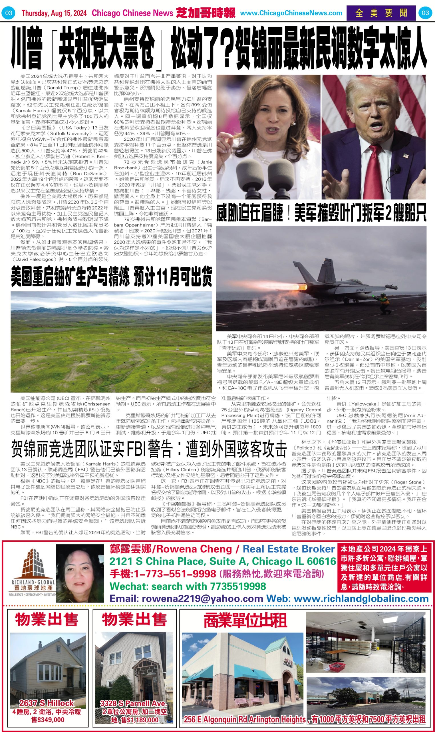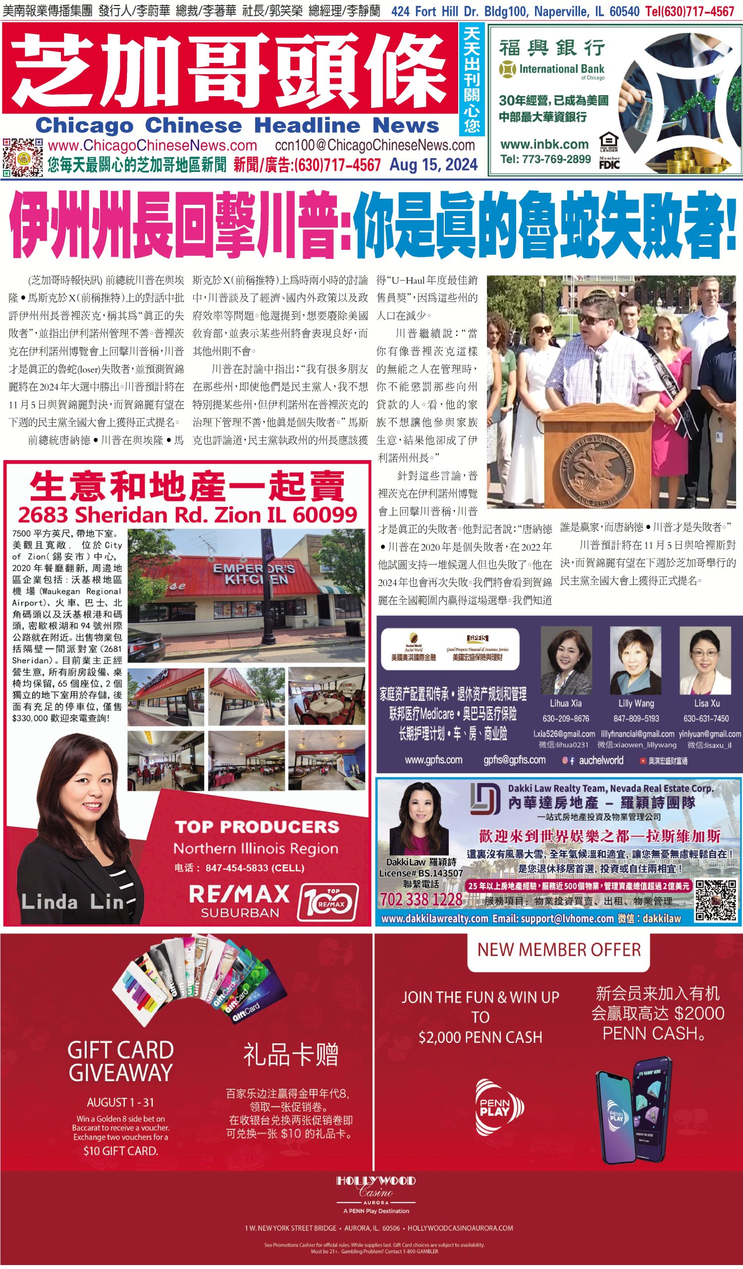 芝加哥頭條08-15-24芝加哥頭條(伊州州長回擊川普:你是真的魯蛇失敗者!) Share this: Share on X (Opens in new window) X Share on Facebook (Opens in new window) Facebook Like Loading... Related