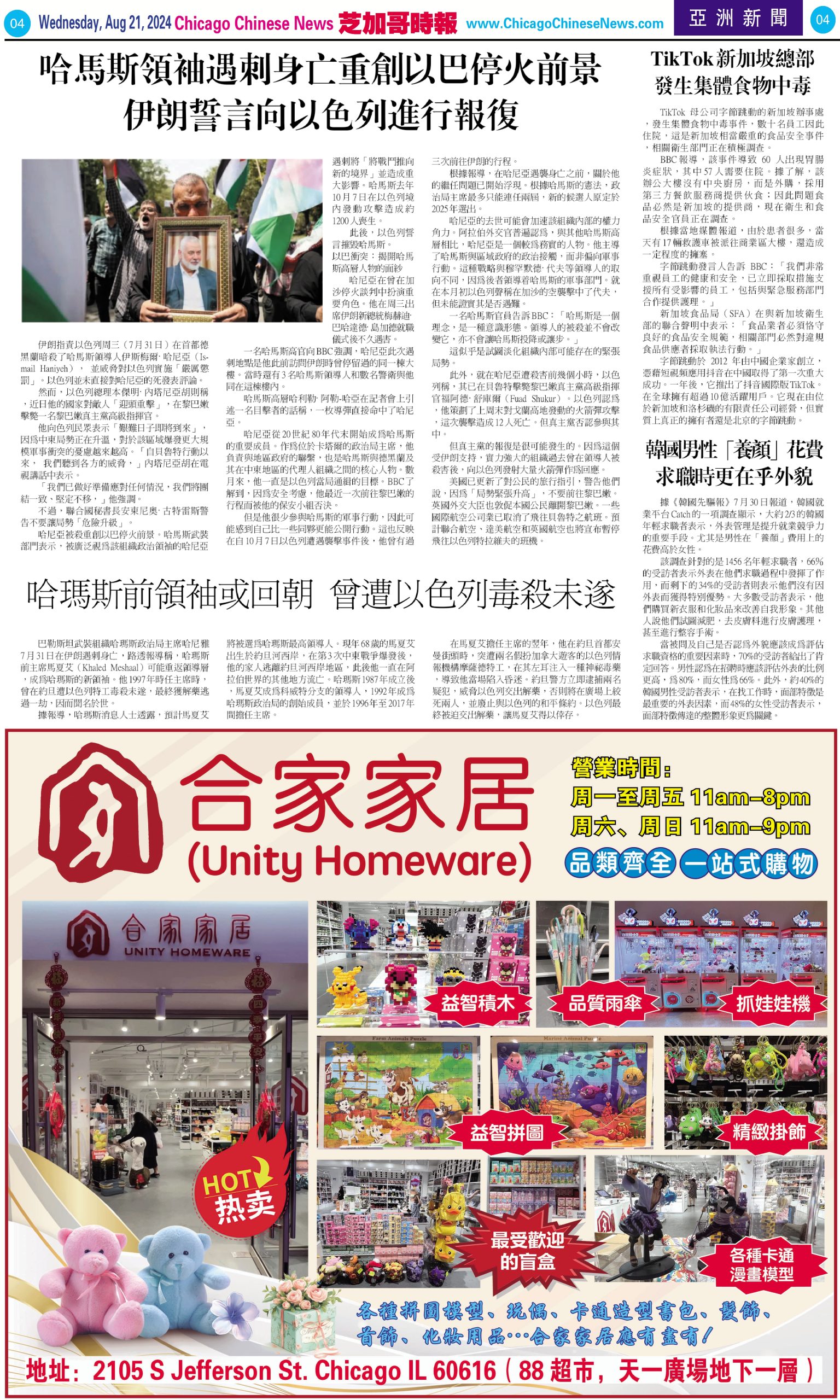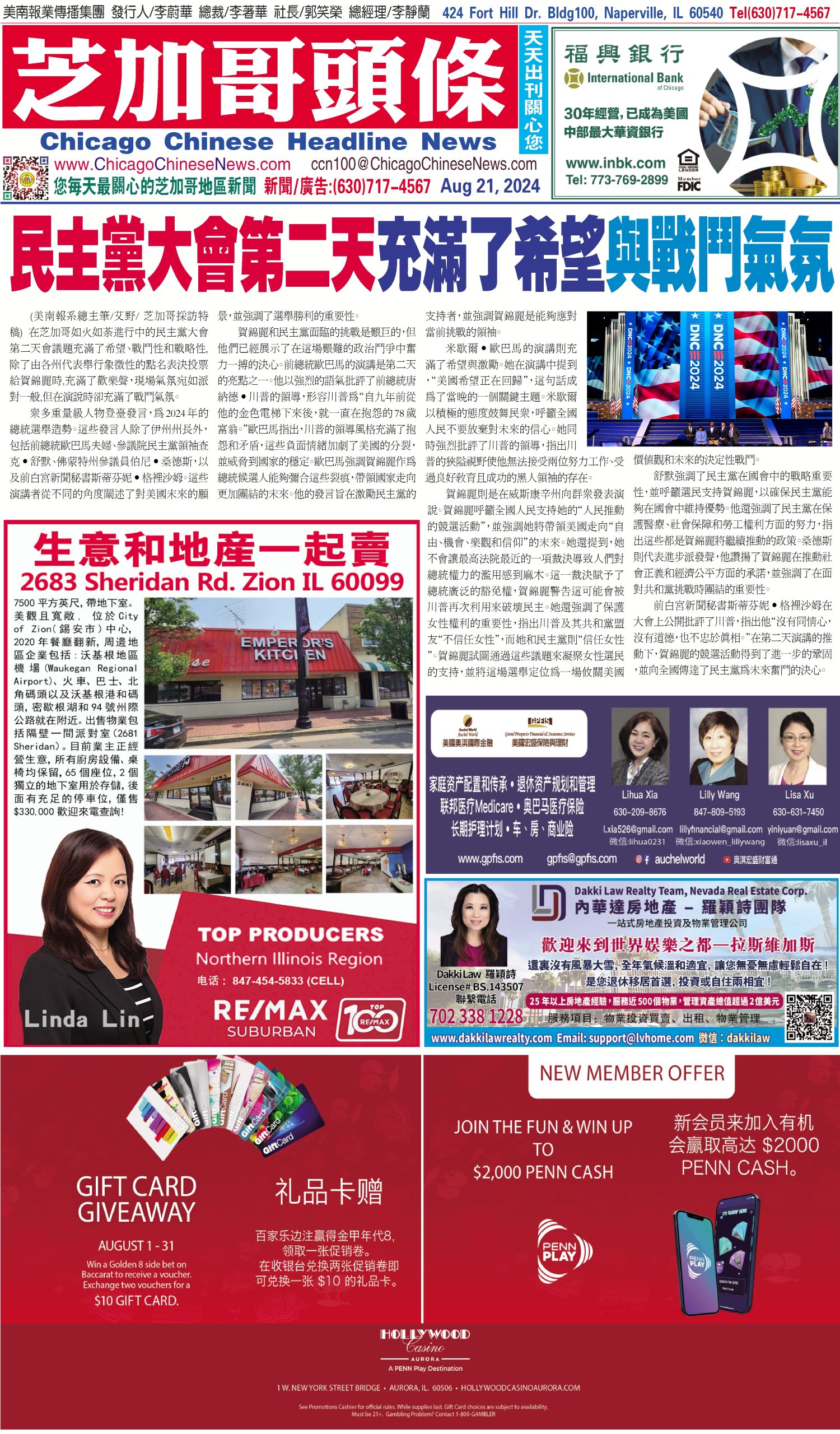 芝加哥頭條08-21-24芝加哥頭條(民主黨大會第二天充滿了希望與戰鬥氣氛) Share this: Share on X (Opens in new window) X Share on Facebook (Opens in new window) Facebook Like Loading... Related