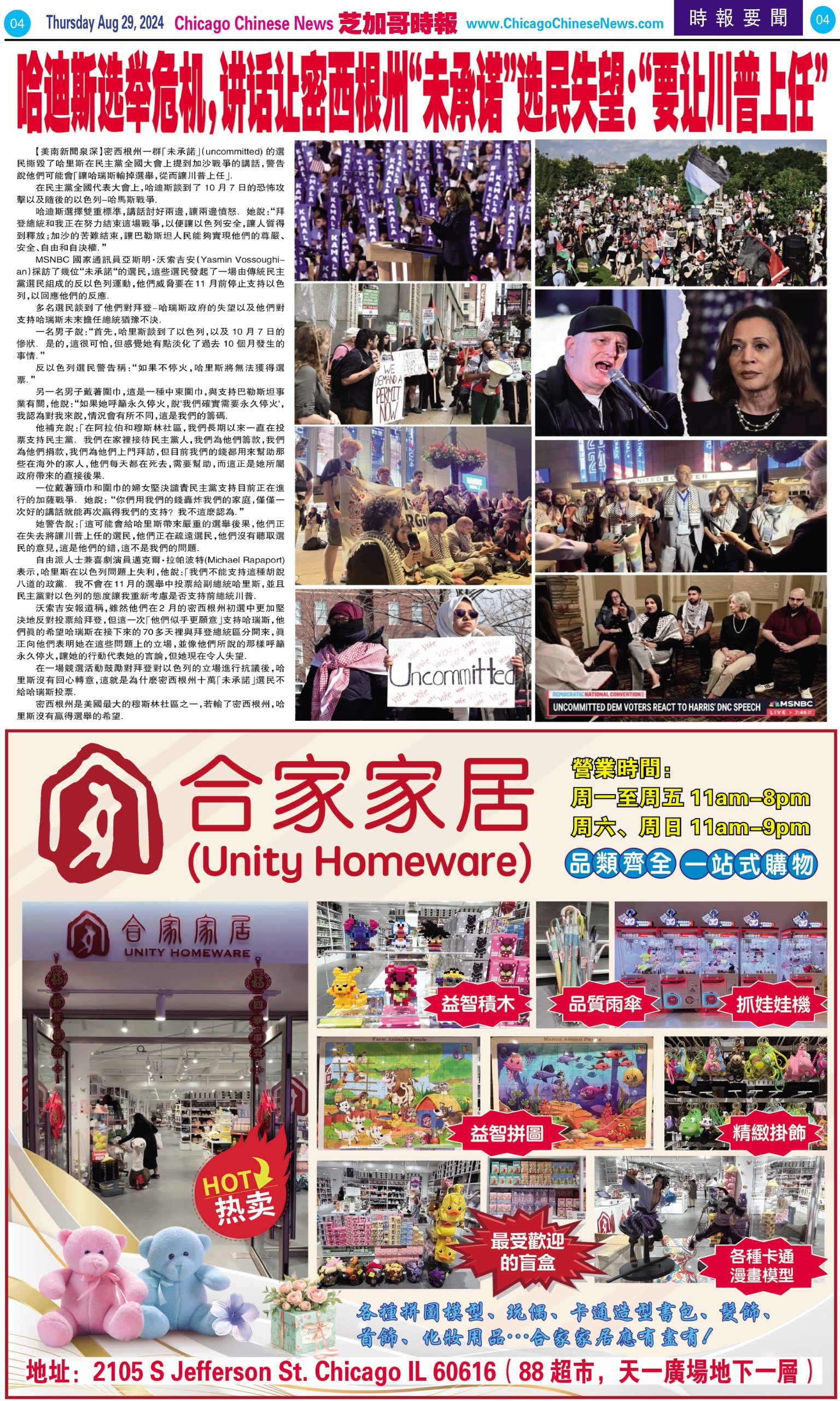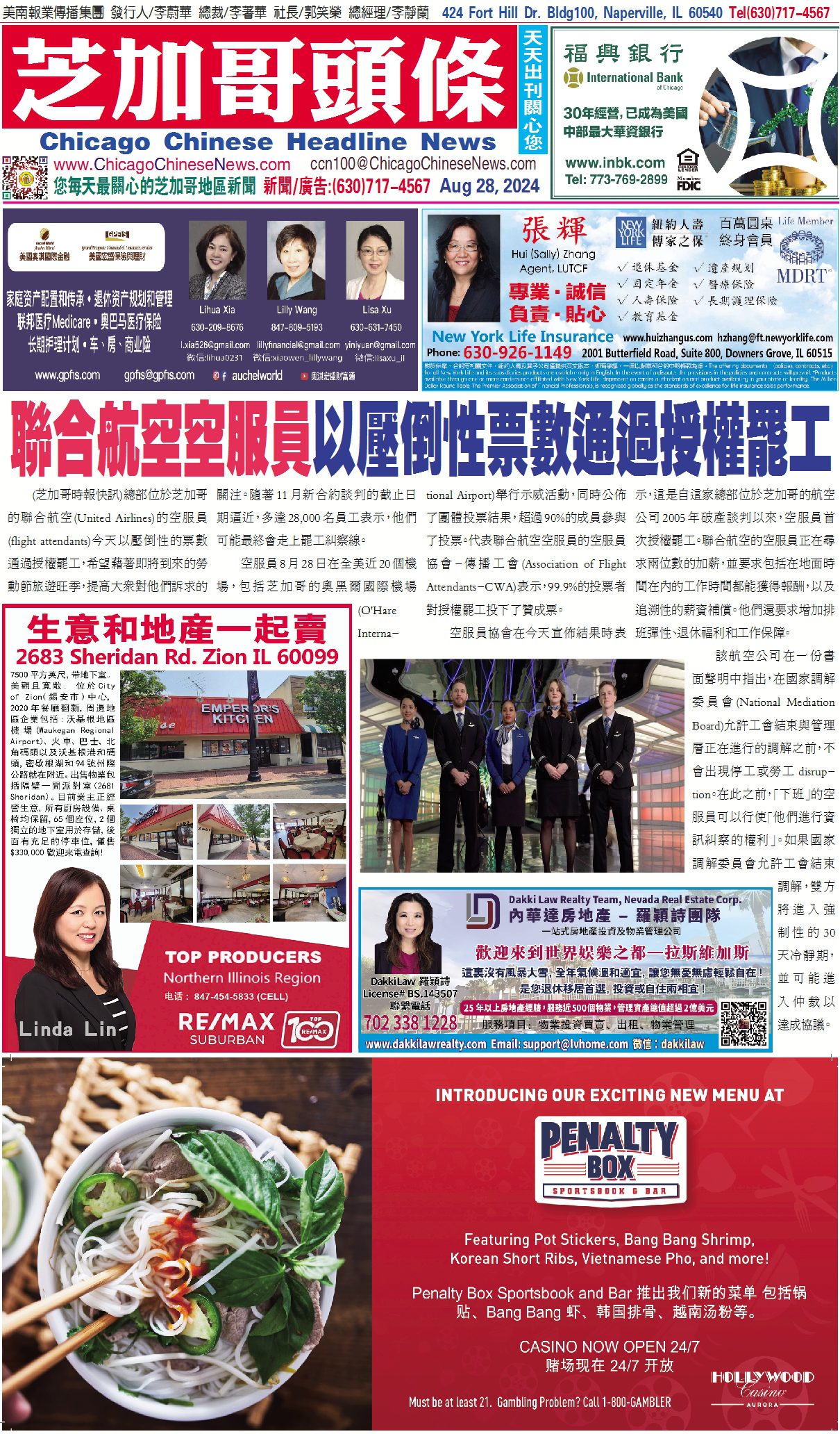 芝加哥頭條08-29-24芝加哥頭條(聯合航空空服員以壓倒性票數通過授權罷工) Share this: Share on X (Opens in new window) X Share on Facebook (Opens in new window) Facebook Like Loading... Related