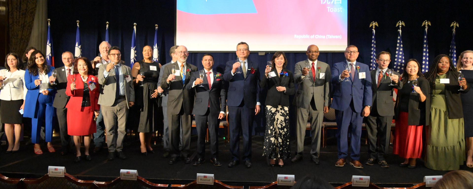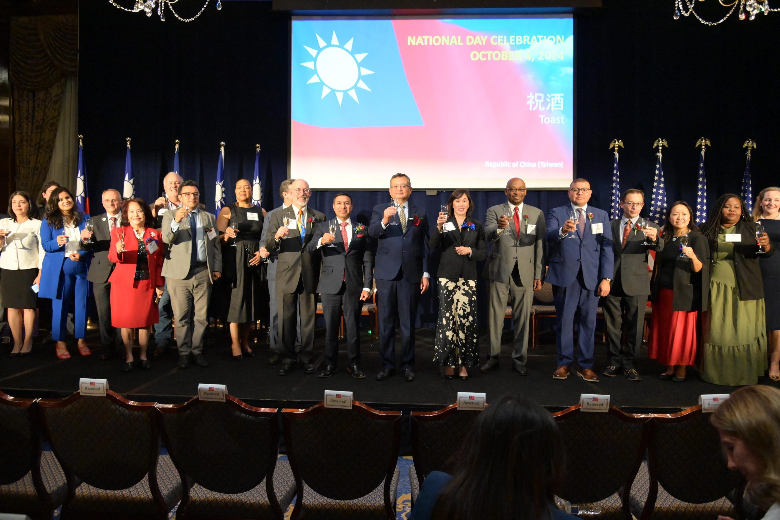 雙十酒會現場嘉賓除了副州長侯炳文外,還有伊利諾州財務長方仲華、印第安納州州務卿Diego Morales、伊州州眾議院「友台連線」共同主席William Davis、印第安納州州眾議院「友台連線」共同主席Mike Andrade、威斯康辛州州眾議院「友台連線」共同主席Scott Allen、伊州州眾議院「友台連線」成員黃凱煥(Hoan Huynh), 芝加哥市議會「友台連線」共同主席Raymond Lopez、Scott Waguespack、盧漢仕(Byron Sigcho-Lopez)、伊州眾議員楊啓華Janet Yang Rohr與瓜地馬拉、海地、加拿大、德國、韓國、捷克、匈牙利、比利時、立陶宛、波士尼亞與赫塞哥維納、尼泊爾等各國駐芝加哥總領事館總領事及資深館員以及僑學各界代表中華會館主席項邦珍, 董事長陳達偉,僑務委員林瑞源,盧曼菁等500多人齊聚⼀堂,現場賓主互動熱烈,之外,伊州州長J. B. Pritzker、印第安納州州長Eric Holcomb、愛荷華州州長Kim Reynolds、聯邦參議員Dick Durbin 、聯邦眾議員Raja Krishnamoorthi 、Tom Tiffany、Betty McCollum及Randy Feenstra 等20餘位中西部政要皆致函慶賀,聯邦參議員Gary Peters 也特別發文祝福,為國慶獻上祝賀。