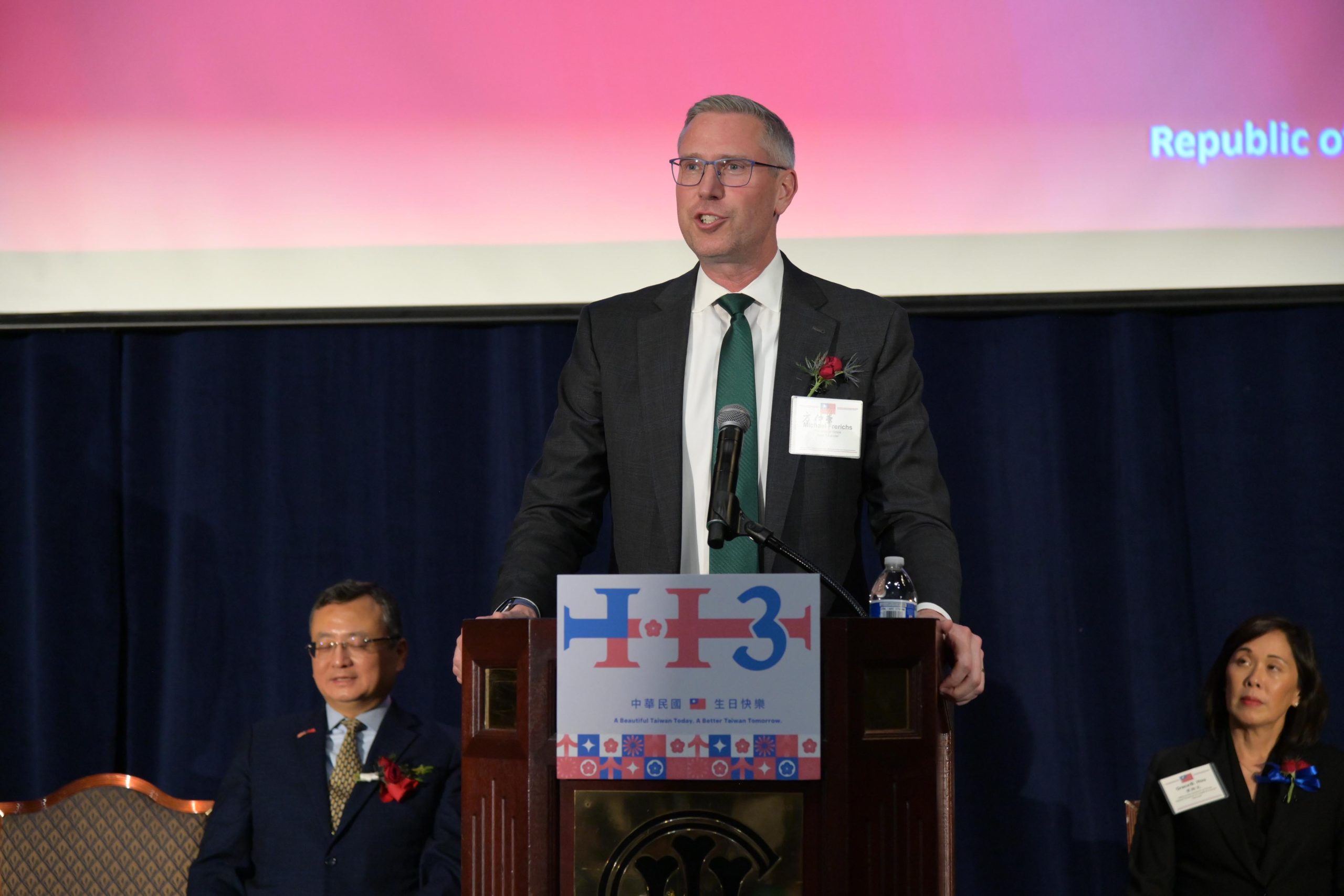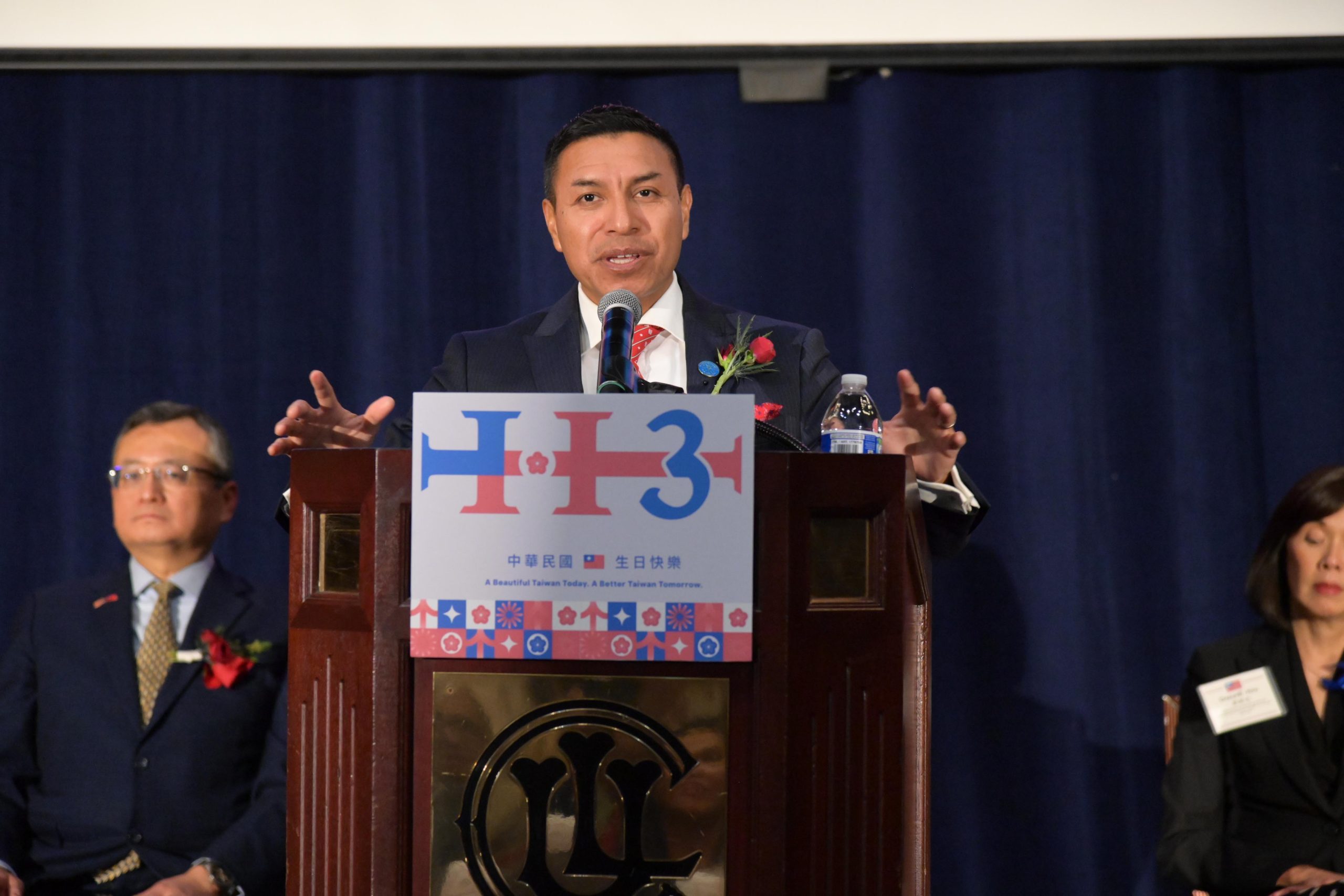 類延峰說:” 2024 年是臺灣民主的另一個里程碑。我們完成了第八次總統和副總統的直接選舉。賴清德總統就職後,迅速提出了「和平四大支柱」行動方案,呼籲強化國防、提升經濟安全、加強與民主國家的夥伴關係,以及穩定且有原則的兩岸領導,將臺灣打造成為促進民主、和平與繁榮的關鍵力量。在賴總統和林佳龍部長的指導下,臺灣將推動整合外交,包括價值觀外交、聯盟外交以及經貿外交,以促進我們的共同利益,並捍衛我們的信念和生活方式。 自 2016 年以來,臺灣每年的國防預算增加了 80%,達到 200 億美元,占總預算的 16.7%,超過美國 12.3% 的國防預算比例。賴總統也成立了「全民防衛動員署」,以強化我們的防衛韌性。今年也是《臺灣關係法》45 週年。美國行政部門和國會展現了高度的跨黨派支持,以深化友好的臺美關係,並履行美國對臺灣的安全承諾。就在本週一,拜登總統批准了對臺灣 5.67 億美元的軍售案,這不僅是拜登總統任內 17 次對臺軍售案中規模最大的一次,也是歷史上最大的一次。