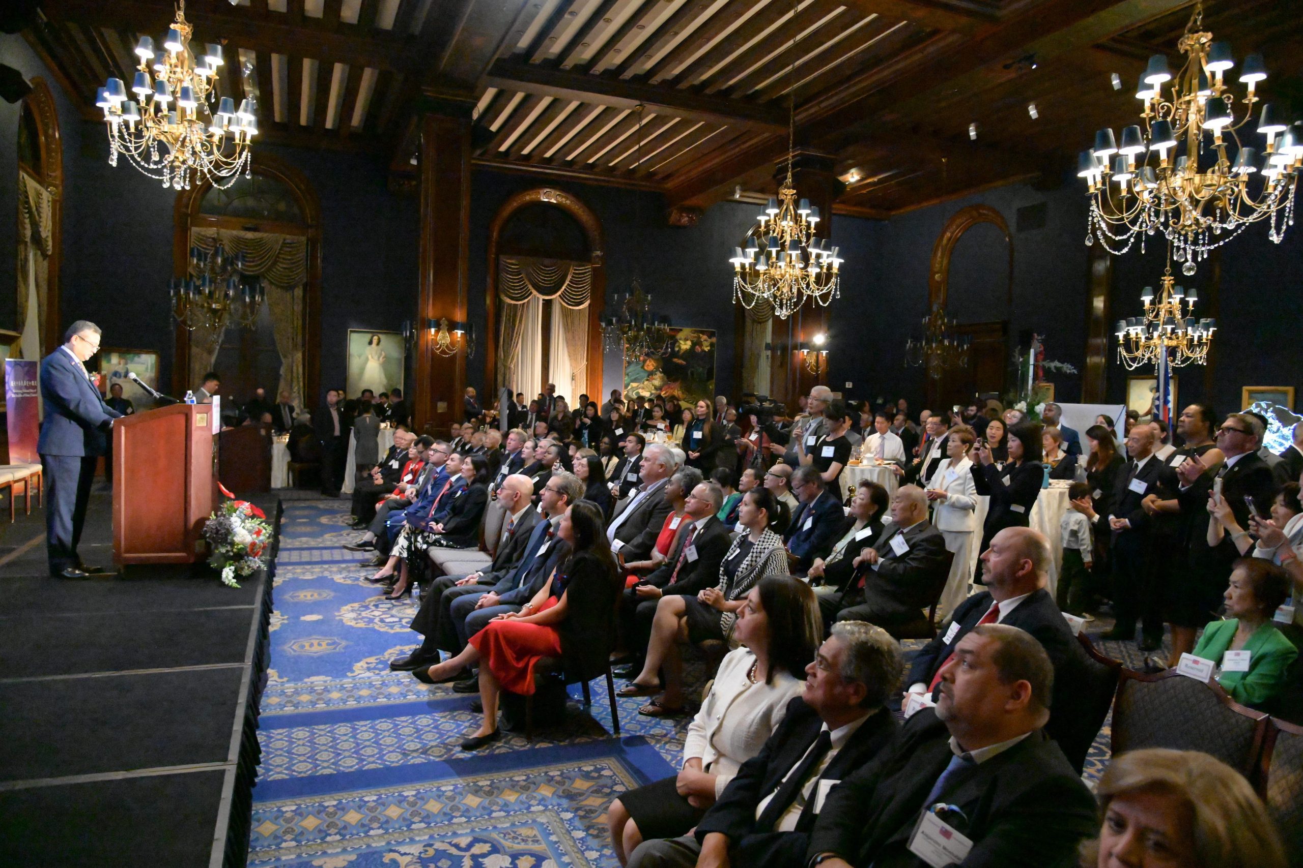 (芝加哥時報記者 / 許毓芳 / 採訪報導) 為慶祝中華民國113年國慶,駐芝加哥臺北經濟文化辦事處於10月4日晚間在芝加哥市中心的合眾俱樂部舉辦雙十國慶酒會,場面熱鬧非凡,包括伊利諾州副州長侯炳文等政要與各界嘉賓雲集,紛紛致以誠摯的祝賀,類延峰處長也發表國慶致詞強調美台是基於共同價值觀的安全與經濟夥伴,堅若磐石的美臺夥伴關係是一種自然的聯盟。