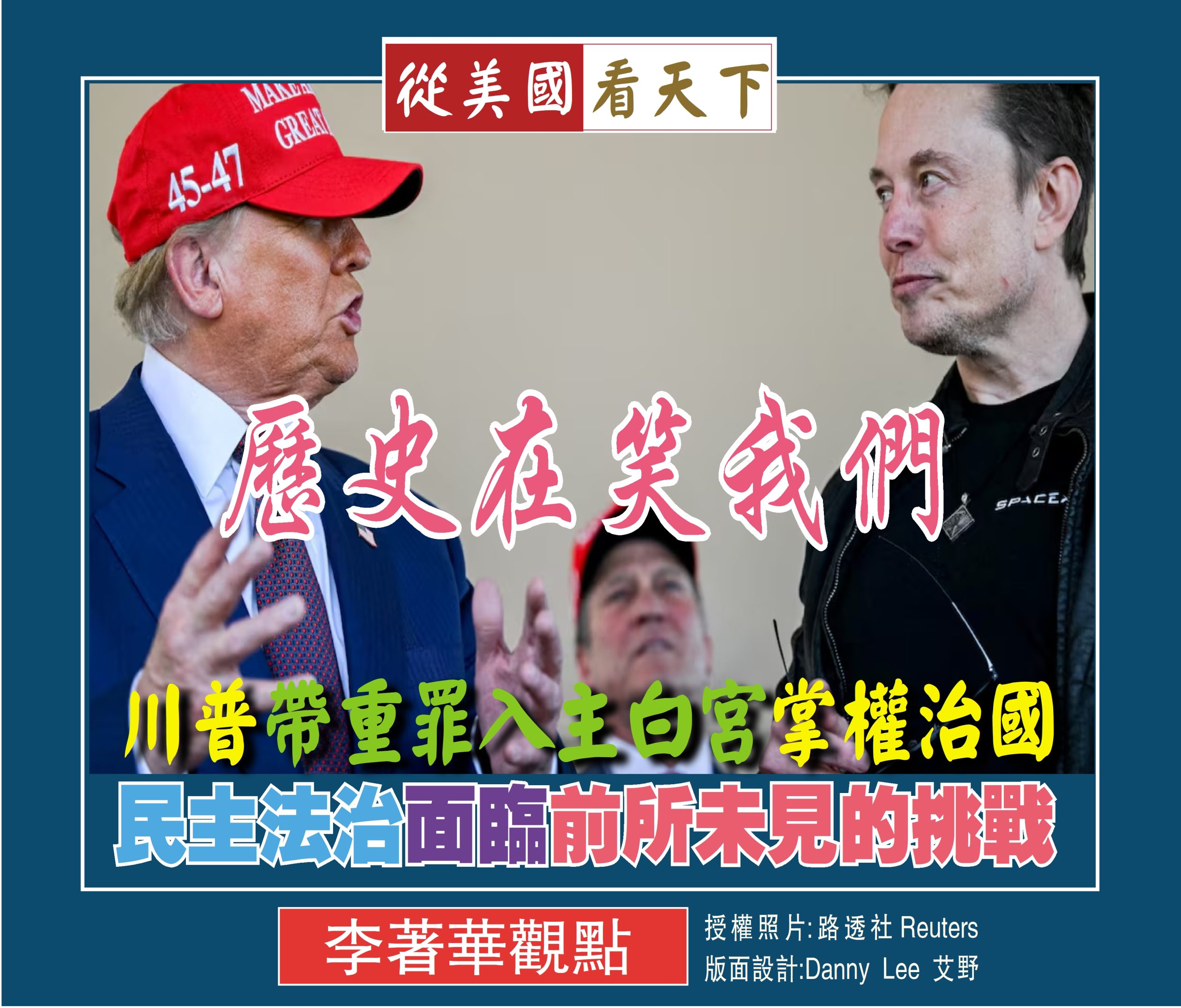 對於參選從政的人我們常常有一句嘲諷的話, 那就是 :”當選過關,落選被關”, 這句話證實了政治淩駕於法律之上。令人啼笑皆非的是現在就連一向標榜民主法治的美國竟然也發生了這麼可笑的事: 因虛報商業記錄等不法行為而遭法官判決有罪的川普即將入主白宮, 使他成為美國歷史上第一位帶著重罪掌權治國的總統, 那是荒謬絕倫的事, 歷史在笑我們, 可是我們有很多人還在沾沾自喜, 美國的民主法治走到這樣的地步, 我只能用”哀莫大於心死”這6個字來形容自己的悲傷!
