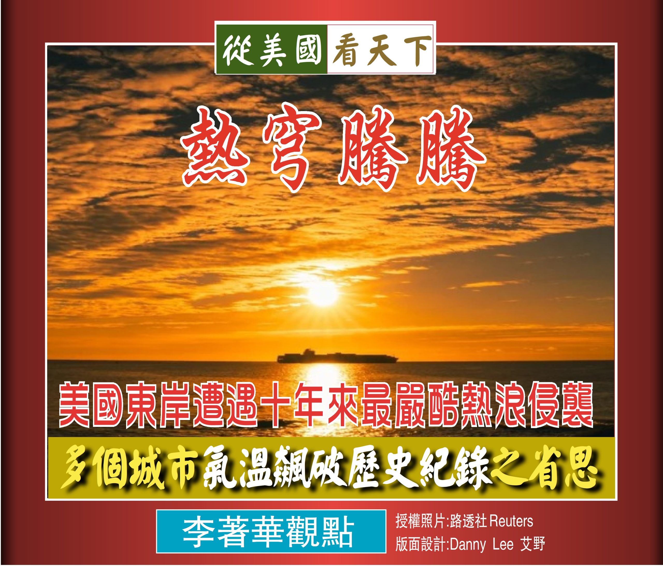【李著華觀點 : 熱穹騰騰–美國東岸遭遇十年來最嚴酷熱浪侵襲‧多個城市氣溫飆破歷史紀錄之省思】