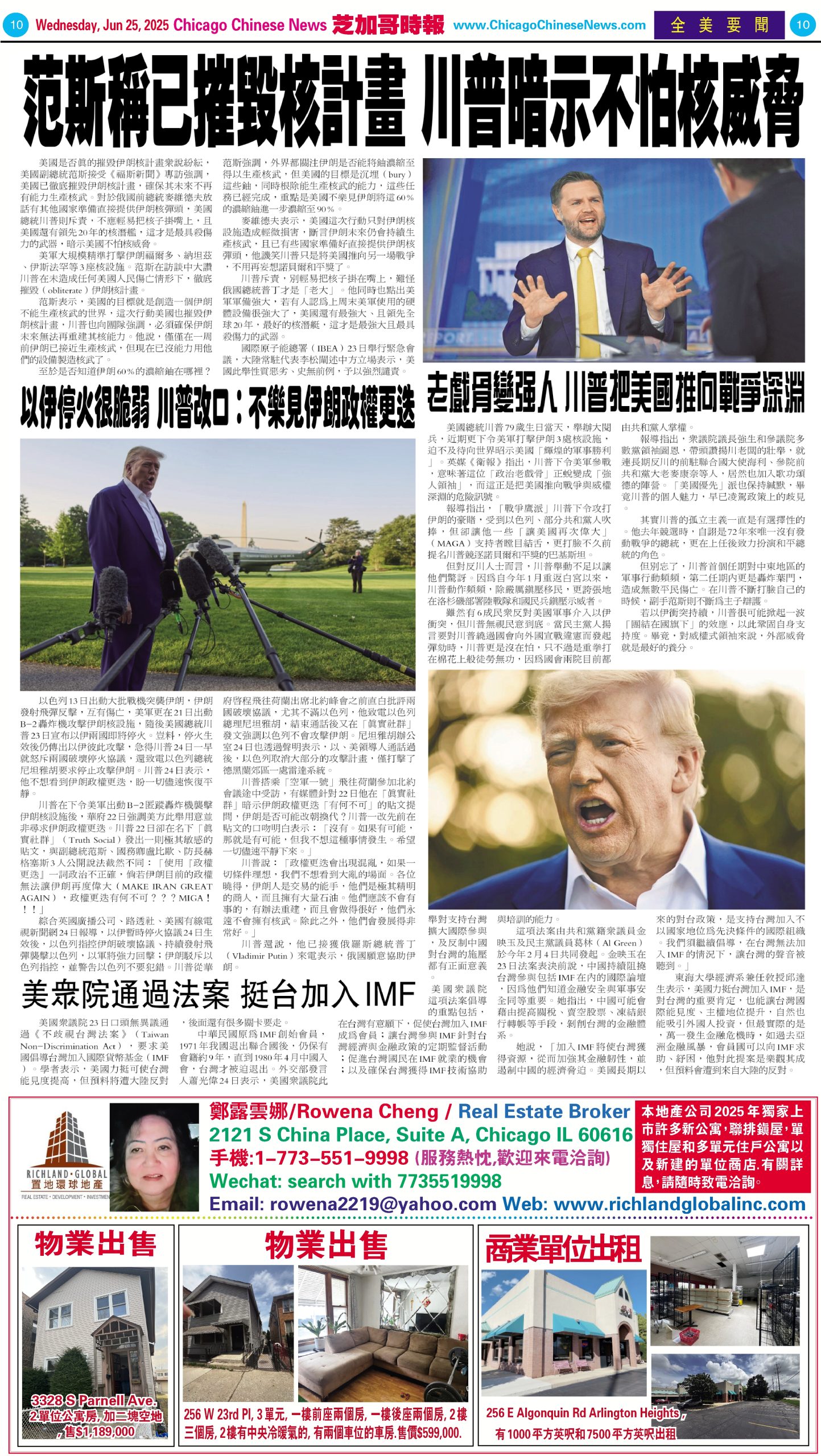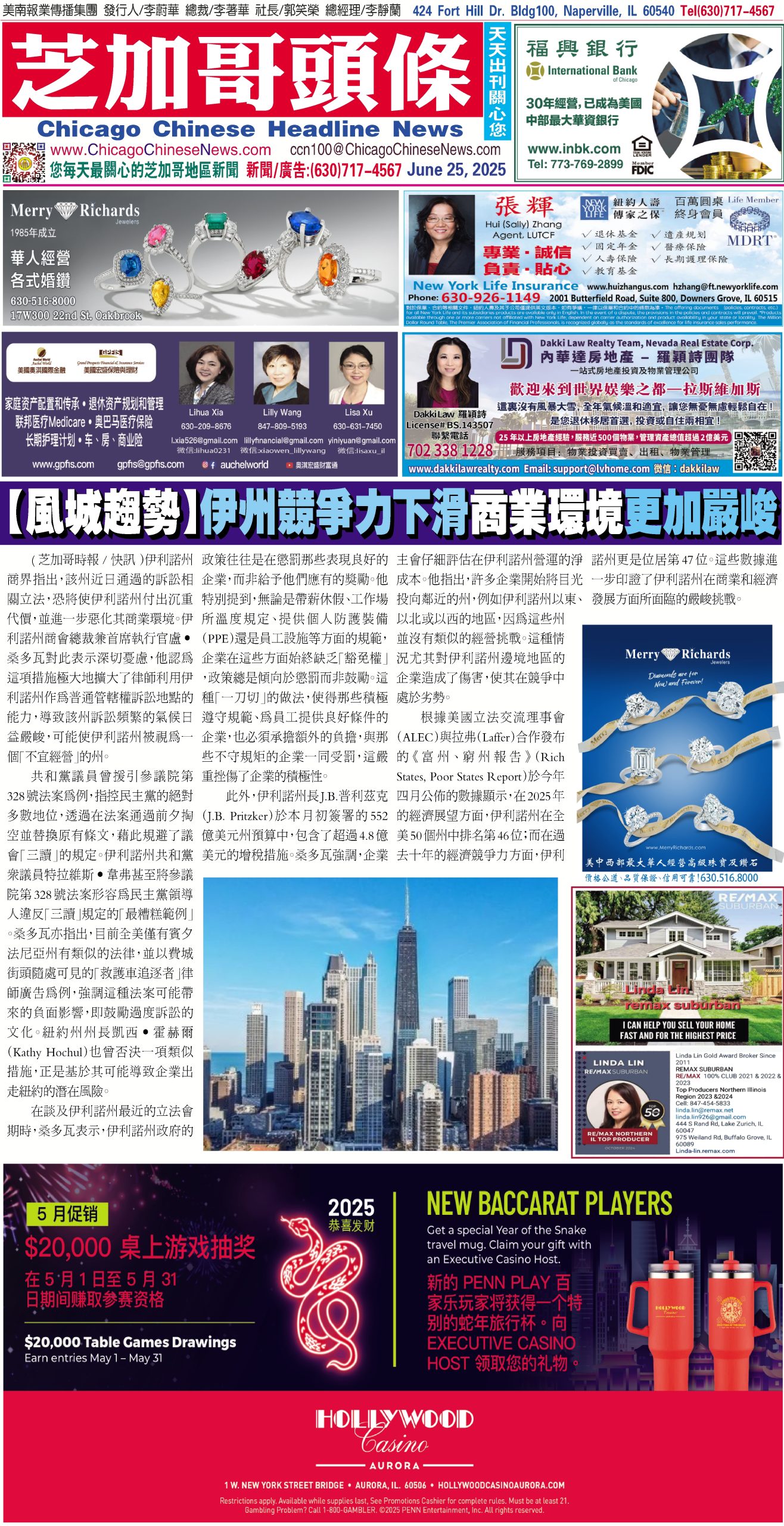 芝加哥頭條06-25-25芝加哥頭條【風城趨勢】伊州競爭力下滑商業環境更加嚴峻 Share this: Share on X (Opens in new window) X Share on Facebook (Opens in new window) Facebook Like Loading... Related