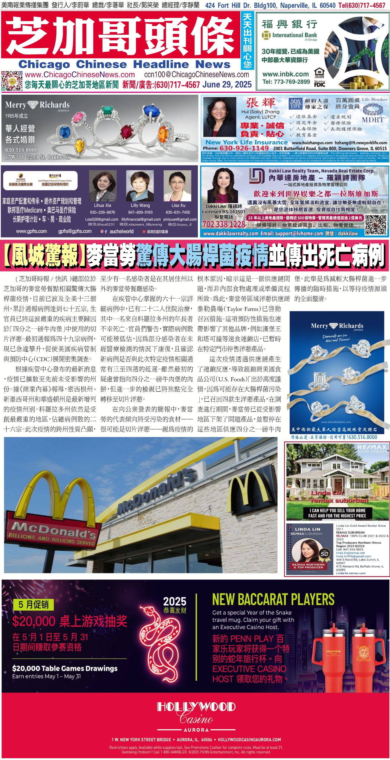 芝加哥頭條06-29-25芝加哥頭條【風城驚報】麥當勞驚傳大腸桿菌疫情並傳出死亡病例 Share this: Share on X (Opens in new window) X Share on Facebook (Opens in new window) Facebook Like Loading... Related