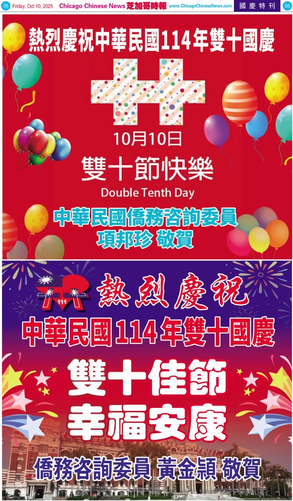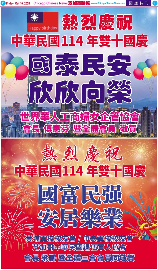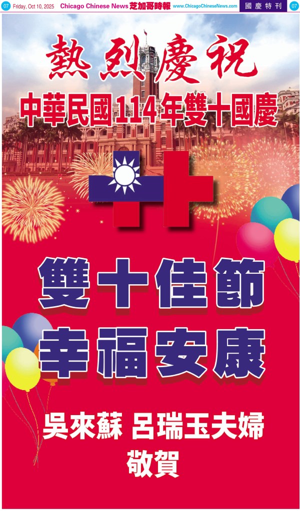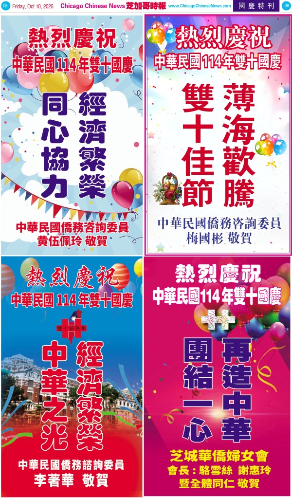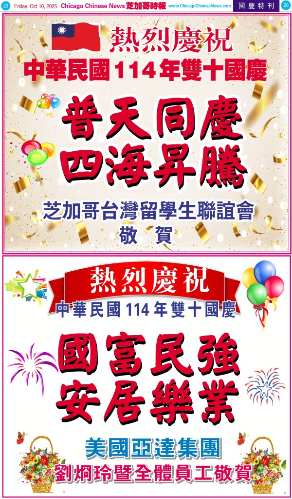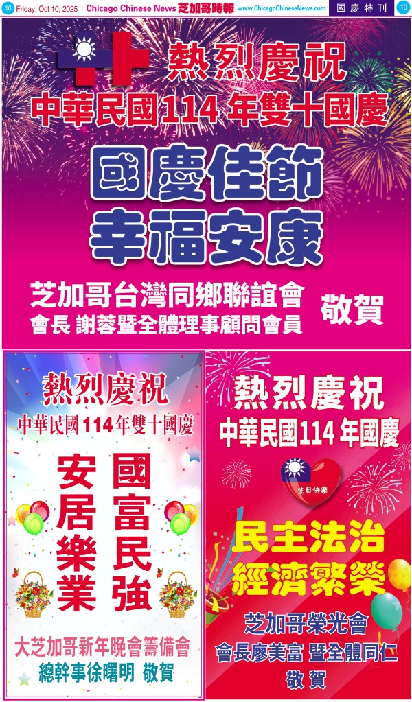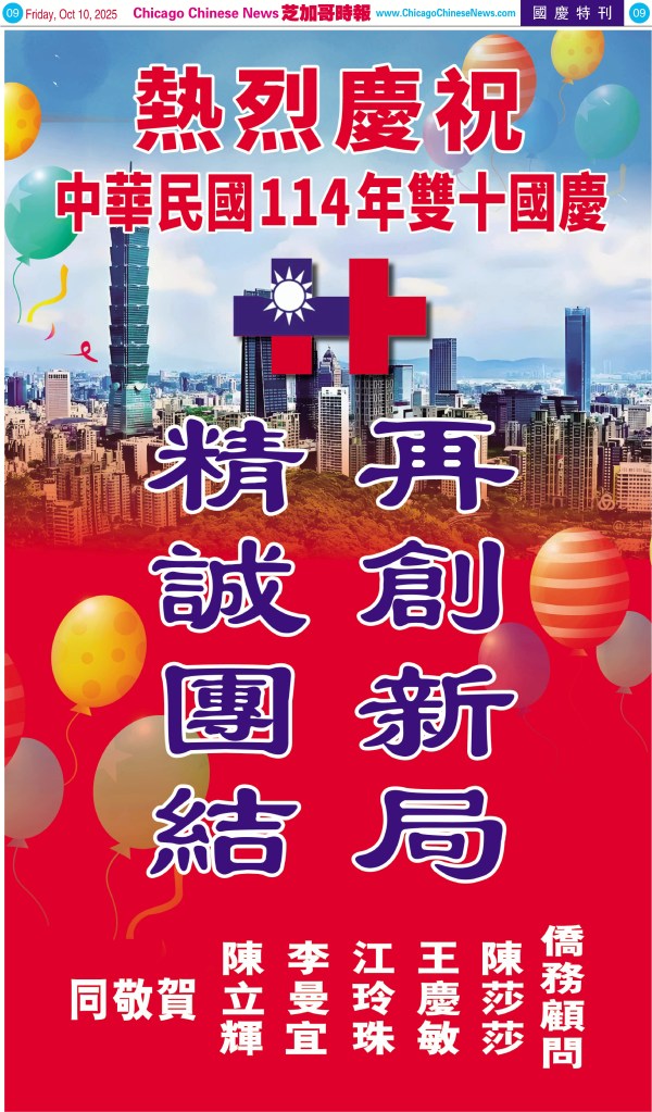 Uncategorized10-10-25芝加哥各界慶祝中華民國114年雙十節特刊 Share this: Share on X (Opens in new window) X Share on Facebook (Opens in new window) Facebook Like Loading... Related