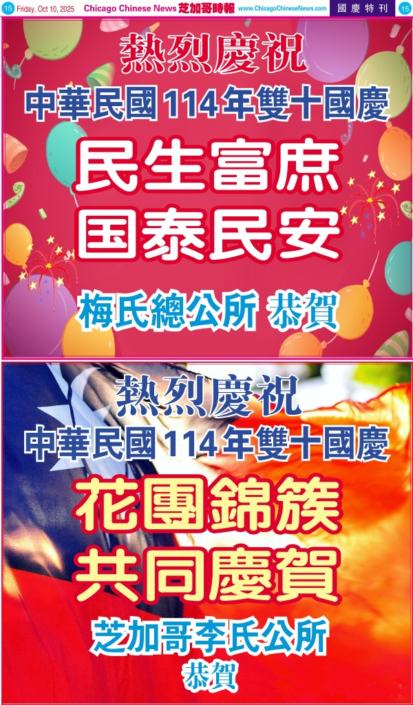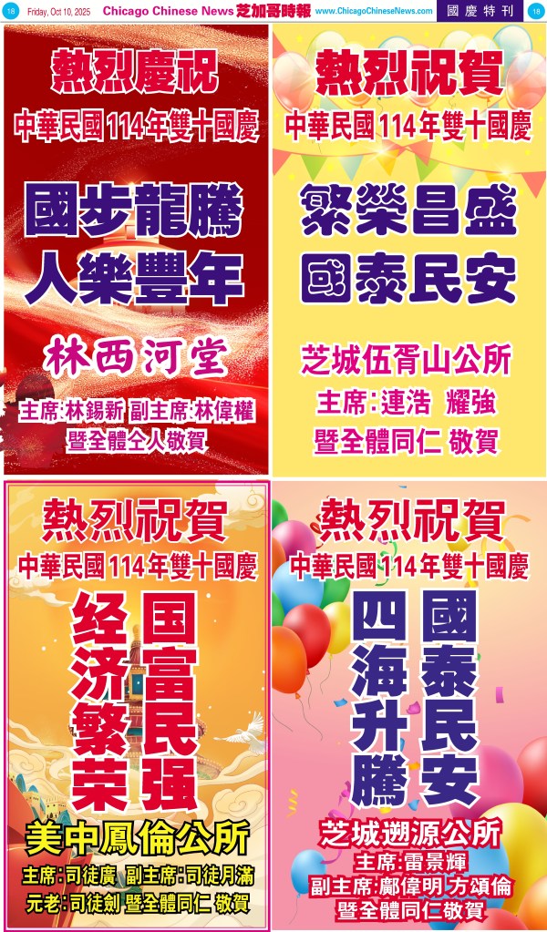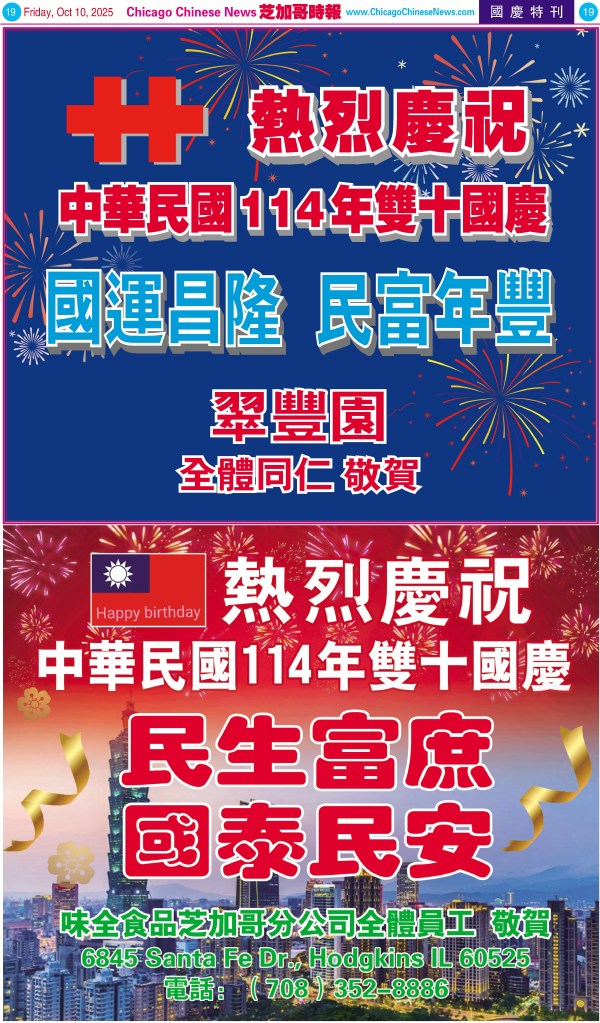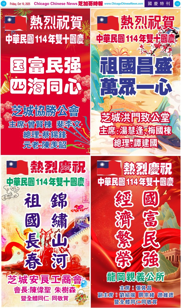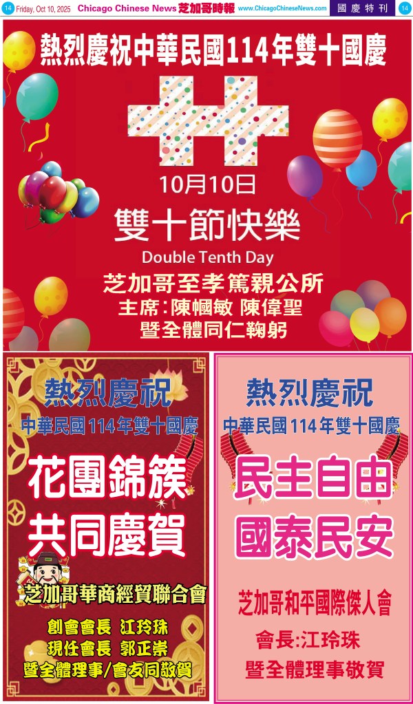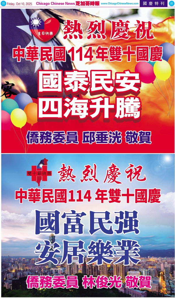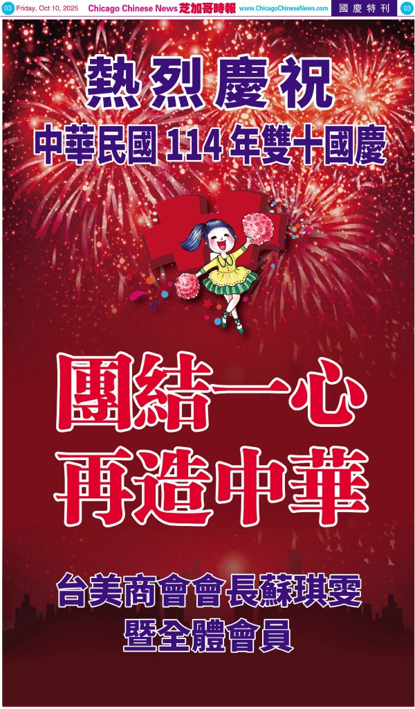 Uncategorized10-10-25芝加哥各界慶祝中華民國114年雙十節特刊 Share this: Share on X (Opens in new window) X Share on Facebook (Opens in new window) Facebook Like Loading... Related
