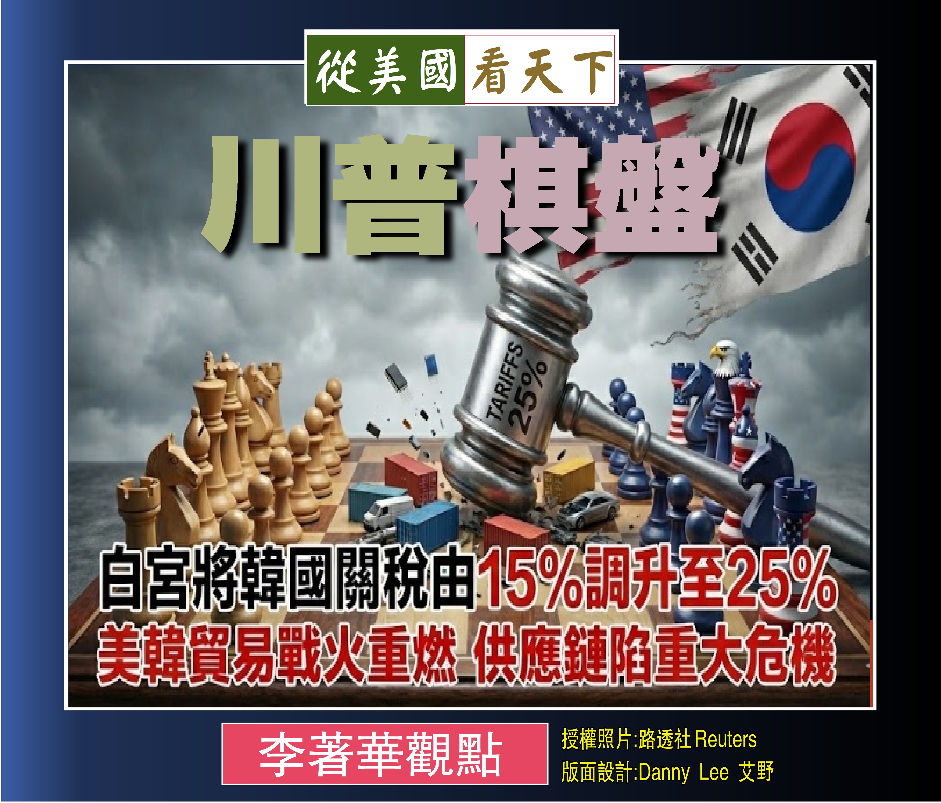 面對如此翻覆無常的決策,不禁令人浩嘆,當今國際局勢真可謂是「世事如棋局局新」,古人誠不我欺, 盟約重信諾與長遠道義,今日博弈卻只重手中的籌碼與瞬間利益。昔日棋局尚有定式可循,講究步步為營;今夕美韓博弈全憑實力與變數,翻臉如翻書,完全視傳統盟邦情誼如無物。