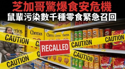 ( 芝加哥時報 / 快訊 )一場涉及範圍極廣的食品安全危機正在全美蔓延,數千種深受家庭喜愛的零食與飲料因受到嚴重的鼠患污染,今日被緊急發布召回令。根據美國食品藥物管理局(FDA)與相關衛生單位的最新公告,這波召回主要源於一處大型配送中心爆發了大規模的齧齒動物侵擾事件。受影響的產品清單令人觸目驚心,包括幾乎每個家庭櫥櫃裡都有的品客洋芋片(Pringles)、Cheerios 麥片、彩虹糖(Skittles)、桂格燕麥條(Quaker Chewy Bars)以及多種知名品牌的餅乾與飲料。