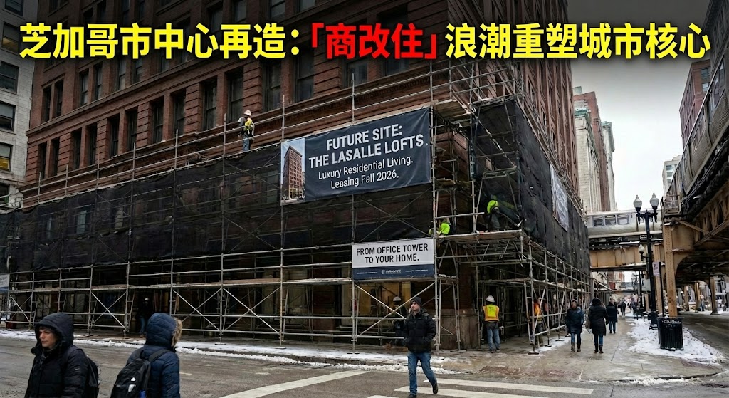 (芝加哥時報/快訊)在後疫情時代遠程辦公常態化的背景下,芝加哥市中心「環區」(The Loop)的商業地產格局正面臨歷史性轉型。為了緩解居高不下的辦公樓空置率並注入新的城市活力,一股「商改住」(Office-to-Residential conversion)的浪潮正在加速推進。