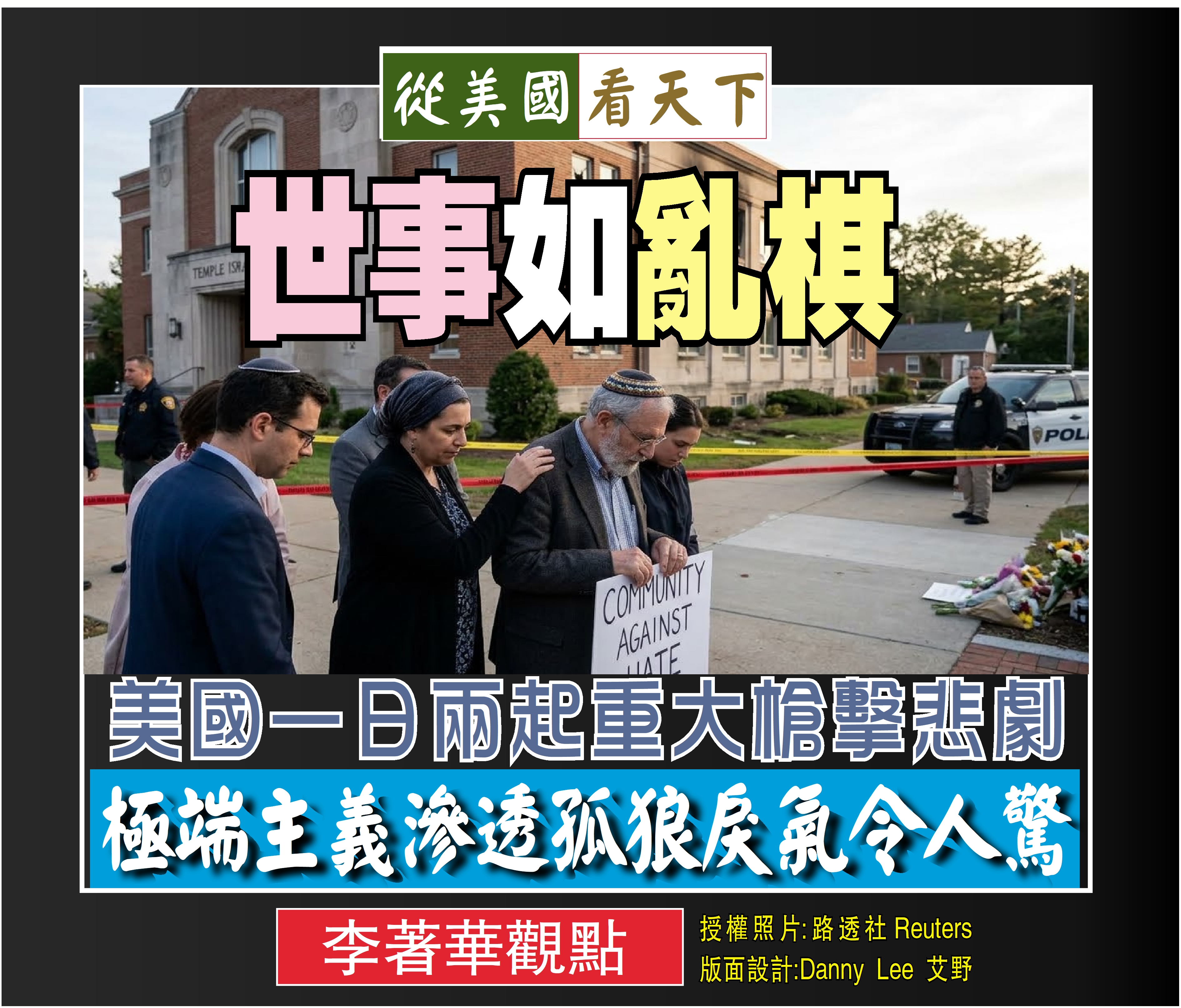 單純的安保升級已無法完全抵禦心魔的侵入。正如古籍所云:「防民之口甚於防川」,防範極端暴力亦需從人心治理與預警機制同步下手。世事如亂棋,局勢頻生變,若我們繼續對邊緣群體的極端化視而不見,今日的大學課堂與明日的社區中心,恐將再無寧日。唯有重塑社區的共融精神,並以強而有力的預警取代事後的哀悼,方能在此亂局之中,為後代守住最後一點太平。