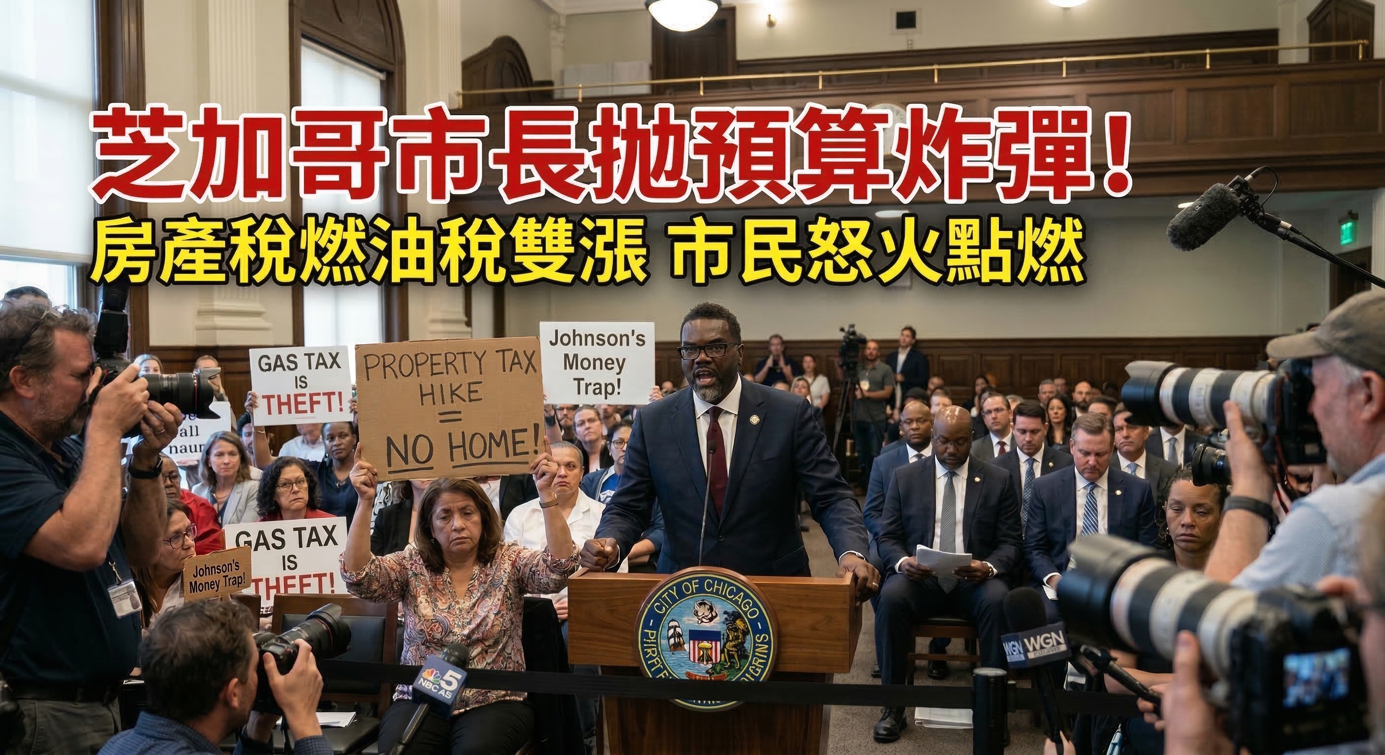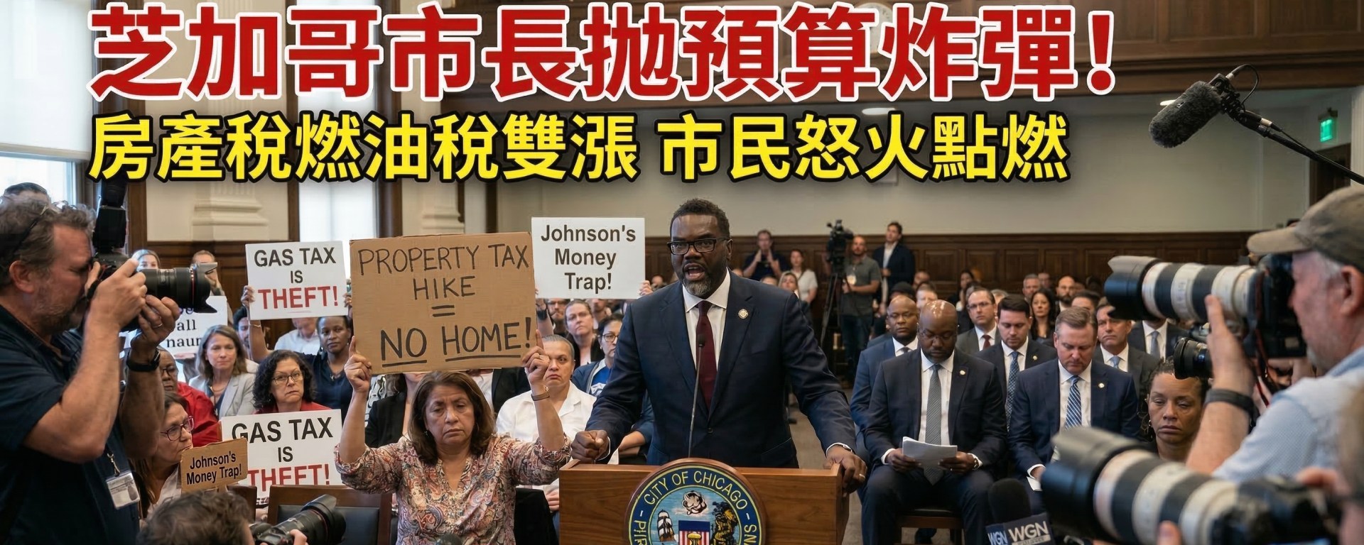 (芝加哥時報/快訊) 芝加哥市長約翰遜(Mayor Brandon Johnson)在市議會緊急預算會議上提出的 2026 財政年度預算修訂案十分令市民失望。這份報告顯示,由於移民安置成本持續增加、警察退休金缺口擴大,以及多項基礎設施建設計畫超支,芝加哥正面臨高達 12 億美元的嚴重財政赤字。為了填補這個錢坑,市長不顧多位市議員的強烈反對,正式提議大幅調漲房產稅(Property Tax)以及市內燃油稅(Gas Tax)。