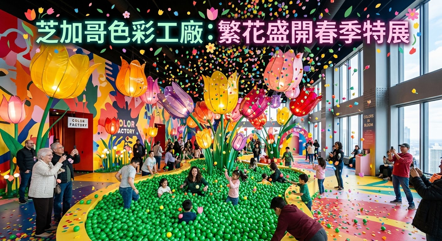 ( 芝加哥時報 / 快訊 )隨著三月的微風悄然吹過密西根湖畔,芝加哥的春意不僅僅體現在逐漸消融的積雪中,更在風城地標威利斯大廈內以一種極致絢爛的方式綻放。備受矚目的沉浸式藝術展覽「色彩工廠」(Color Factory)日前正式宣布,全新的春季主題特展「Colors in Bloom」已於本月隆重開幕。這場展覽不僅僅是視覺的饗宴,更是一次對芝加哥城市精神與春季生命力的深情致敬。