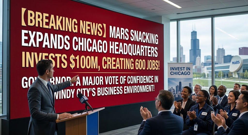 ( 芝加哥時報 / 快訊 )伊利諾州商業與經濟發展迎來重大喜訊!全球知名零食巨頭瑪氏公司(Mars Snacking)正式宣佈,將對其位於芝加哥的全球總部進行大規模投資擴建,金額高達1億美元。此舉將在風城創造多達600個新的就業崗位,被伊利諾州長JB·普利茲克(JB Pritzker)譽為對芝加哥商業環境投下的重大信任票,也為芝加哥乃至整個伊利諾州的經濟復甦注入了一劑強心針。
