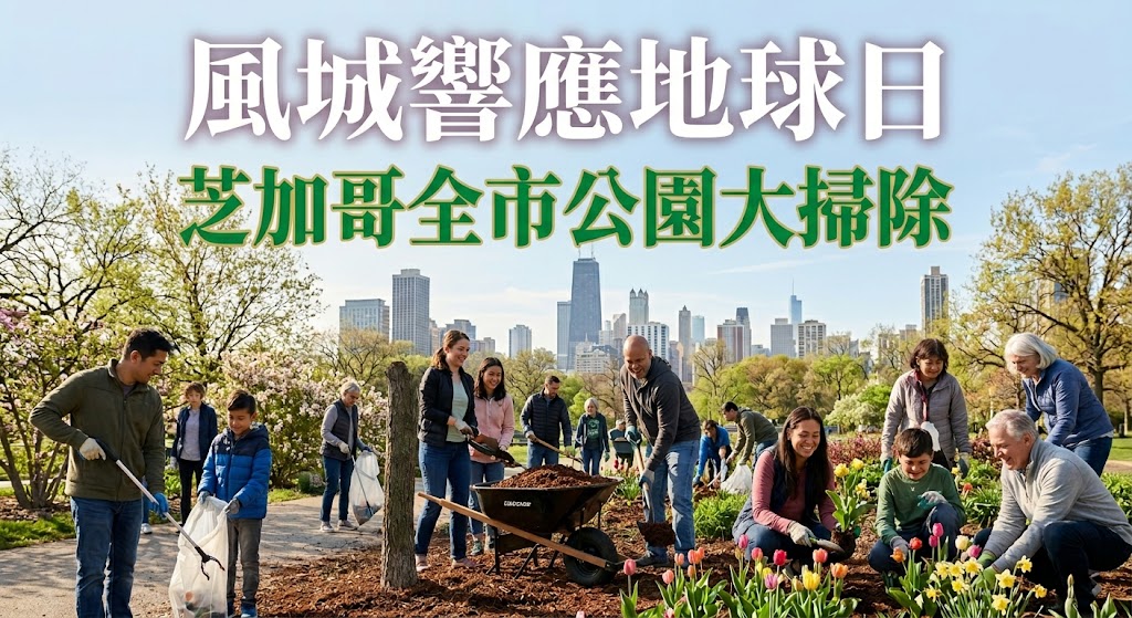 ( 芝加哥時報 / 快訊 )春意盎然的週末早晨,芝加哥迎來了一場充滿活力與正能量的綠色盛事。今天4月18日是芝加哥公園管理局與「公園之友」組織攜手合作舉辦的第四十一屆地球日年度大清掃活動。從清晨開始,全市超過一百四十個公園便湧入成千上萬名熱心的志工,大家不分年齡與族裔,紛紛戴上手套、拿起工具,共同投入這場旨在美化城市綠地的全體動員。這場活動不僅僅是為了清除積累的落葉與垃圾,更是風城居民展現社區凝聚力與環保精神的最佳舞台,為這座繁華都市的肺葉注入了全新的生命力。