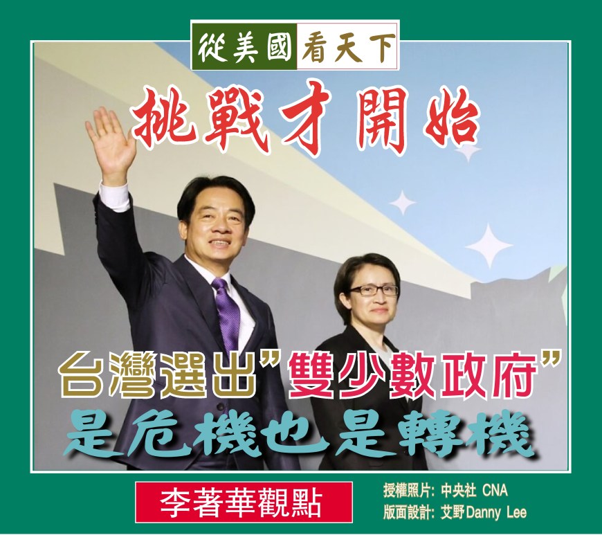 【李著華觀點: 挑戰才開始–台灣選出”雙少數政府”是危機也是轉機】