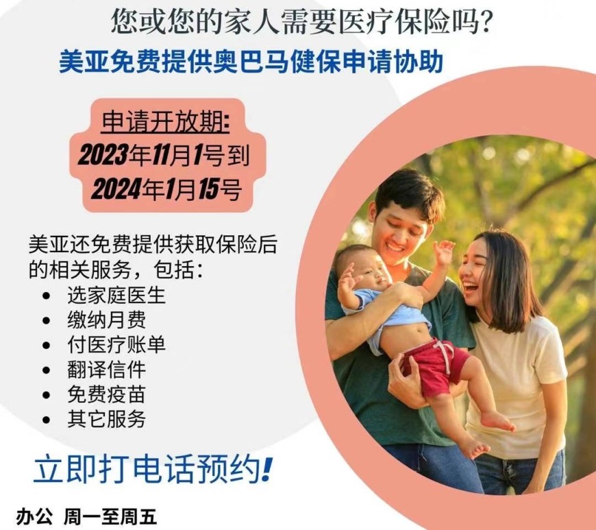 (芝加哥時報訊)又到了一年一度重新申请或更新Obama Care (奥巴马健康保险)的时候,美亚健康協會现在开始接受2024年奥巴马健保申请预约!