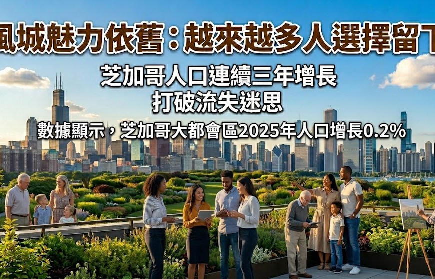 (芝加哥時報/快訊)長期以來,關於芝加哥地區因高稅收、犯罪率和其他社會問題導致居民大規模「出走」(Exodus)的說法不絕於耳。然而,美國人口普查局(Census Bureau)最新發布的估計數據卻給出了一個出人意料且令人振奮的答案:芝加哥大都會區的人口已經連續第三年實現增長。