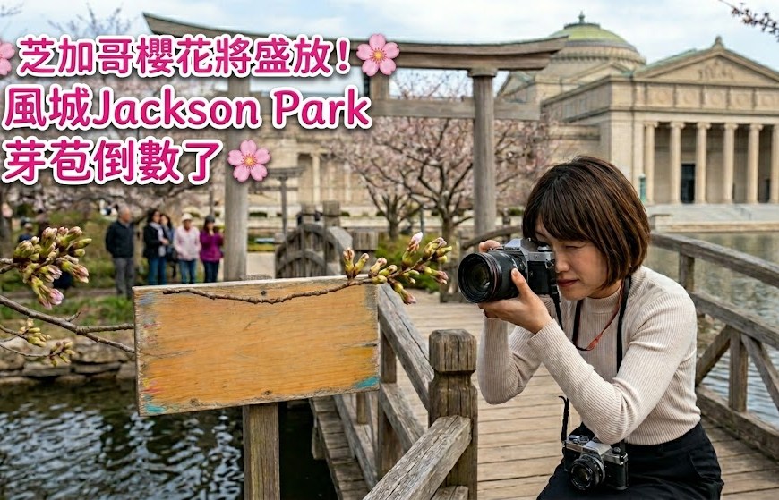( 芝加哥時報 / 快訊 )雖然風城芝加哥依舊春寒料峭,密西根湖畔的風還帶著幾分凜冽,但對於敏銳的追春者來說,Jackson Park 的櫻花樹枝頭已悄悄捎來春天的重要訊息,預示著一場粉色風暴即將席捲鳳凰花園。