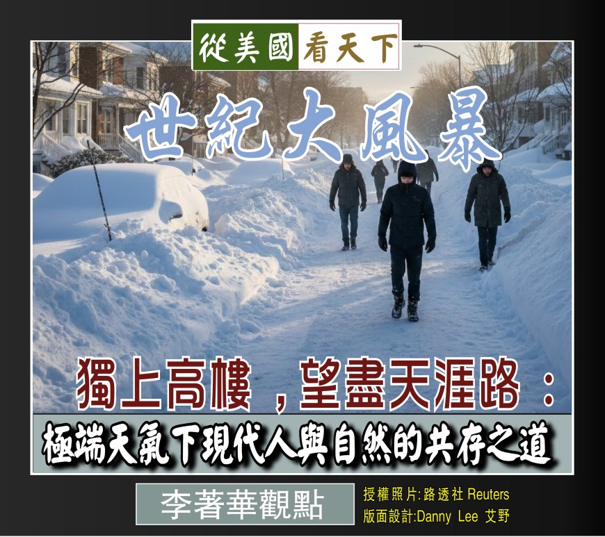 這是古人晏殊在《蝶戀花》中所描繪的景緻,這本是登高遠眺、思索人生歸途的孤寂意境,然而當這份意象投射在今日美國東北部這一場歷史性的「炸彈氣旋」之下,卻產生了令人窒息的跨時空共鳴。當超過兩英尺的驚人降雪在一夜之間封鎖了紐約、費城到大西洋城的每一條街道,數千萬人在暴風雪警告下被禁錮於室內,那種「望盡天涯路」的茫然,已不再是個人的離愁別緒,而是全人類在面對自然反撲時集體的焦慮與卑微。昔日文人登高是為了尋找靈魂的出口,今日我們登高卻只見白茫茫的嚴寒與孤寂,這種強烈的對比,正是一面冷峻的鏡子,映照出人類在科技文明包裝下的傲慢與脆弱。