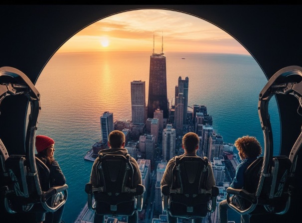 ( 芝加哥時報 / 快訊 )當您坐在懸浮的座椅上,雙腳騰空,隨著一陣帶有密西根湖水汽與春天丁香花香的微風拂面而過,您的視角正以時速六十英里的速度掠過箭頭般的威利斯大廈,並瞬間俯衝進芝加哥劇院的華麗舞台,這不是夢境,而是目前席捲全美的觀光熱潮「飛越芝加哥」(Flyover Chicago)。