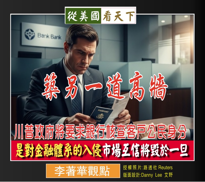 Continue reading “【李著華觀點:築另一道高牆–川普政府要求銀行核查客戶公民身分 是對金融體系的入侵市場互信將毀於一旦】 “