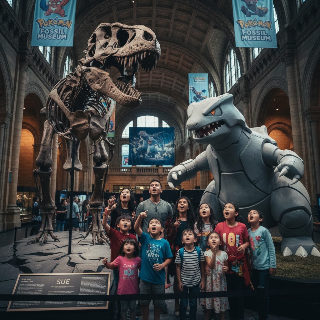 ( 芝加哥時報 / 快訊 )「江山代有才人出,各領風騷數百年」,清代趙翼的詩句訴說著時代的更迭與英雄的輪轉,但誰曾想到,在億萬年前的古生物化石面前,風靡全球的虛擬角色亦能跨越次元,領略一場超越時空的文化交鋒。當菲爾德博物館的鎮館之寶「蘇」(SUE the T. rex)張開它那令人不寒而慄的巨顎時,一旁的巨大「怪顎龍」模型正與之對峙,這不是好萊塢電影的科幻情節,而是即將於 2026 年 5 月在芝加哥拉開帷幕的「寶可夢化石展」北美首秀。